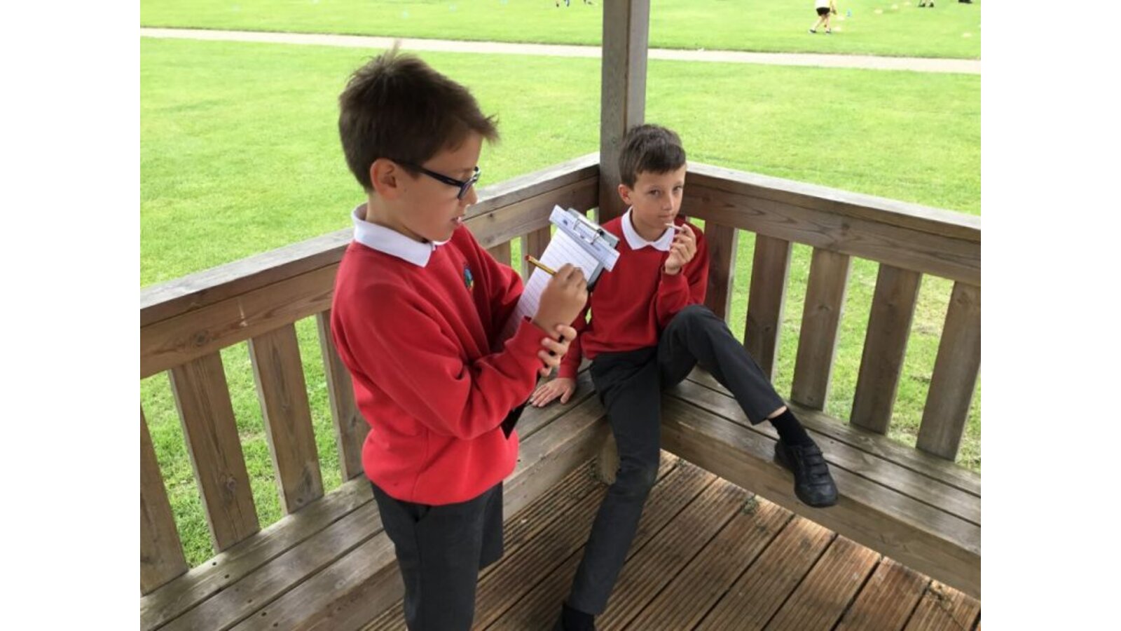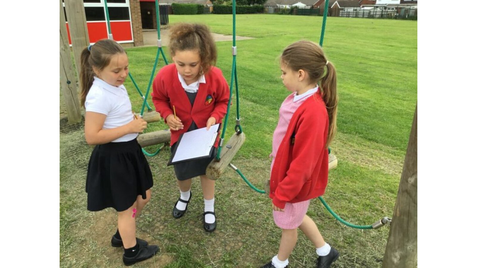Today the children created their own questions based on all the areas of maths they’ve learnt this year. They went outside into the playground and created their questions based on the playground and field. They had to write 3-5 questions with their partner then swap with another pair.