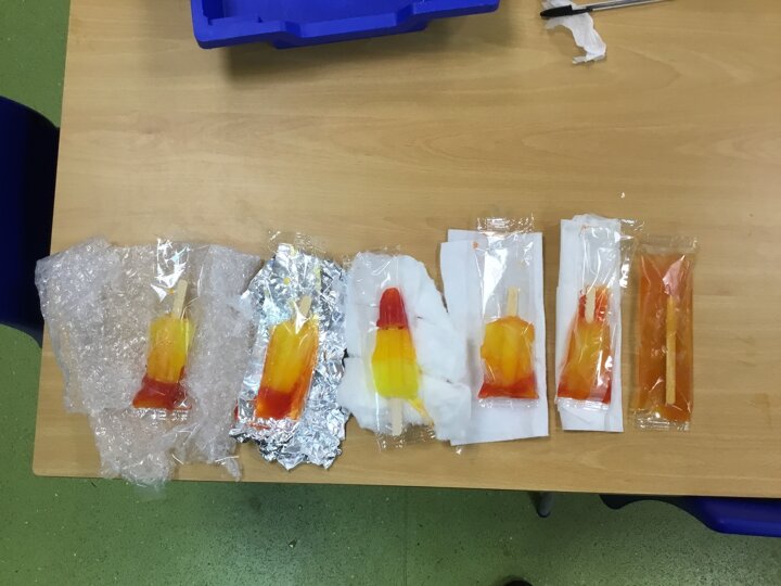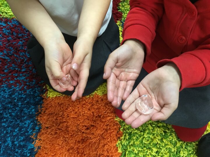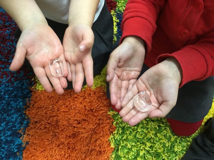 Reception have enjoyed learning about melting and freezing. We watched an ice cube melt in our hands and discussed what was happening to it. We then predicted what would happen to our ice lollies and discussed what we could do to stop them melting. As a class we wrapped the lollies in different materials to try and stop them from melting and made our predictions. We then watched what happened!