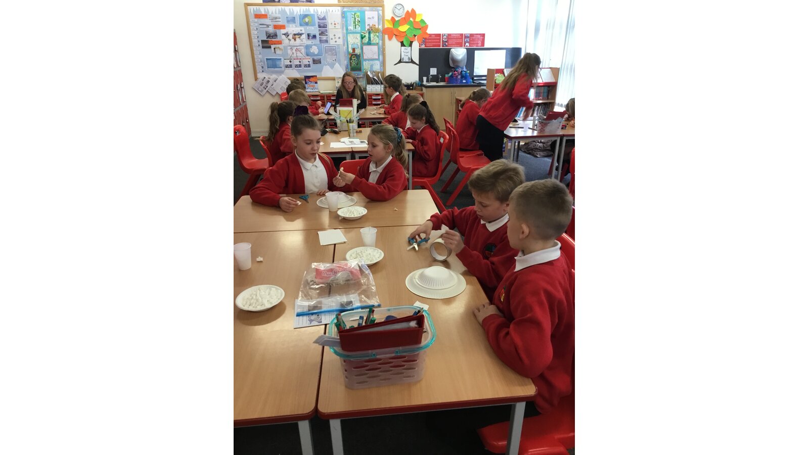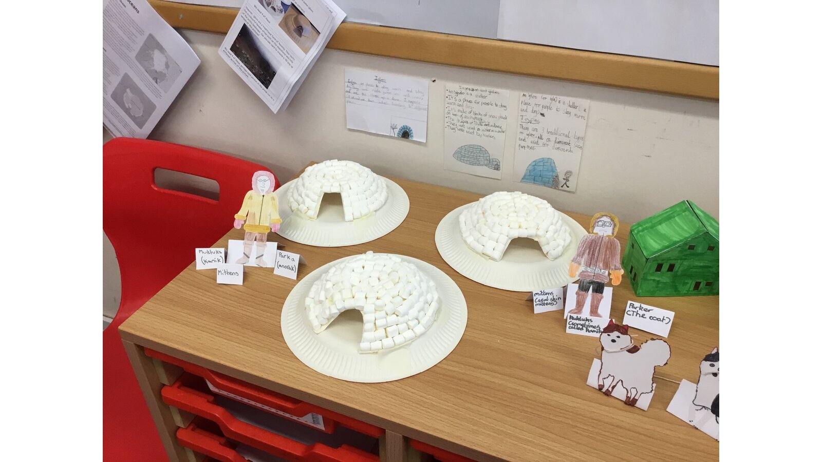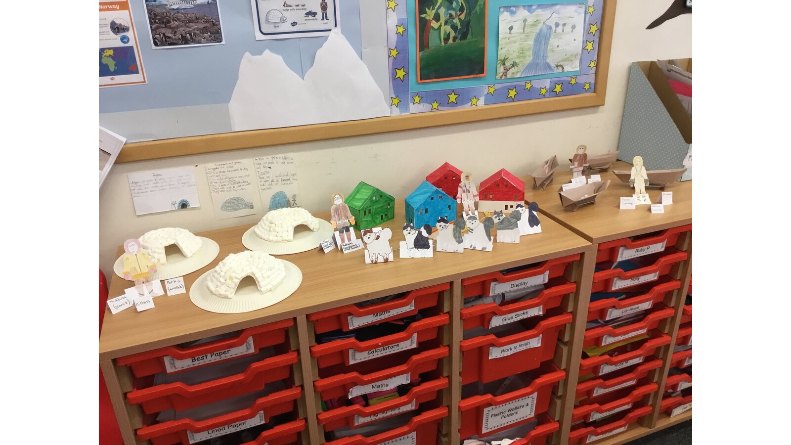 To introduce our new topic on Inuits, Year 5 spent the afternoon creating our very own Inuit village. They were put into groups and had to do 1 of 5 tasks: to make a kayak using origami, make stand alone Inuit people and labels for their clothes, make a sled and free standing huskies, recreate modern houses and traditional igloos, although ours were made using mini marshmallows. The children had a fantastic afternoon and I’m sure you’ll agree, the village looks fantastic!