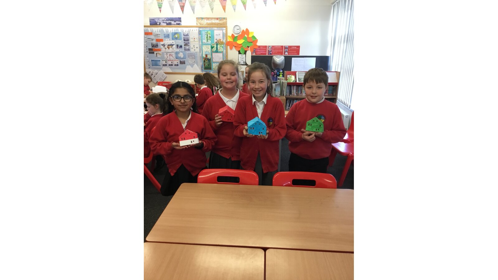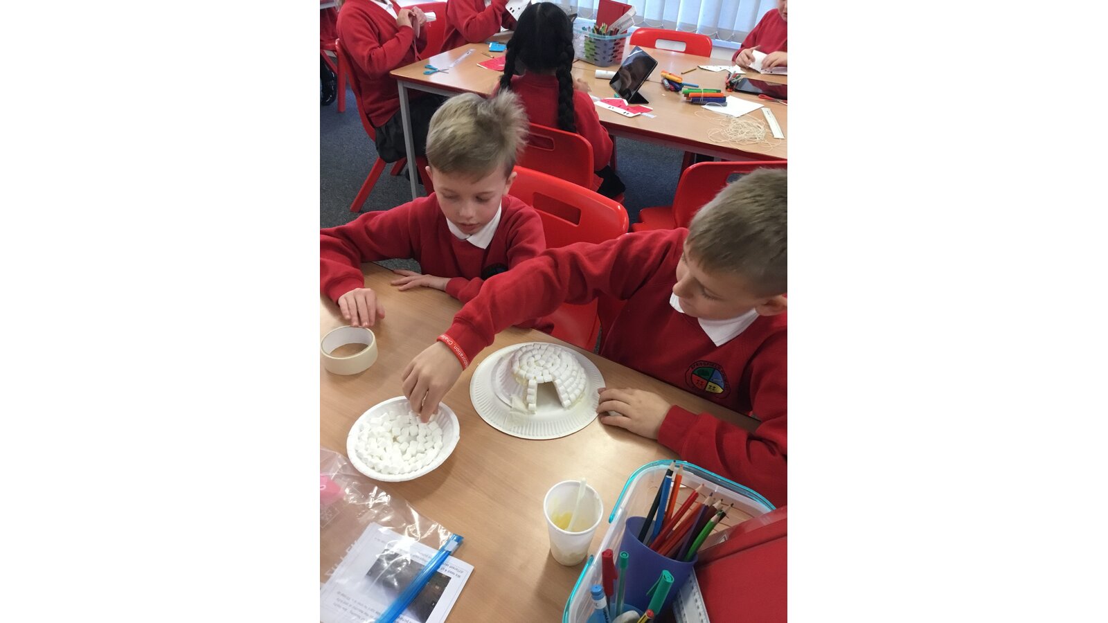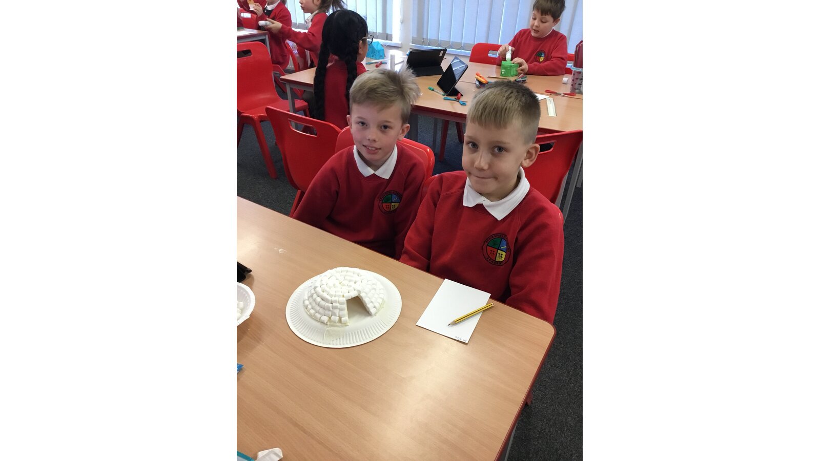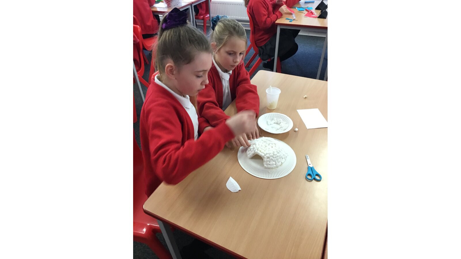 To introduce our new topic on Inuits, Year 5 spent the afternoon creating our very own Inuit village. They were put into groups and had to do 1 of 5 tasks: to make a kayak using origami, make stand alone Inuit people and labels for their clothes, make a sled and free standing huskies, recreate modern houses and traditional igloos, although ours were made using mini marshmallows. The children had a fantastic afternoon and I’m sure you’ll agree, the village looks fantastic!