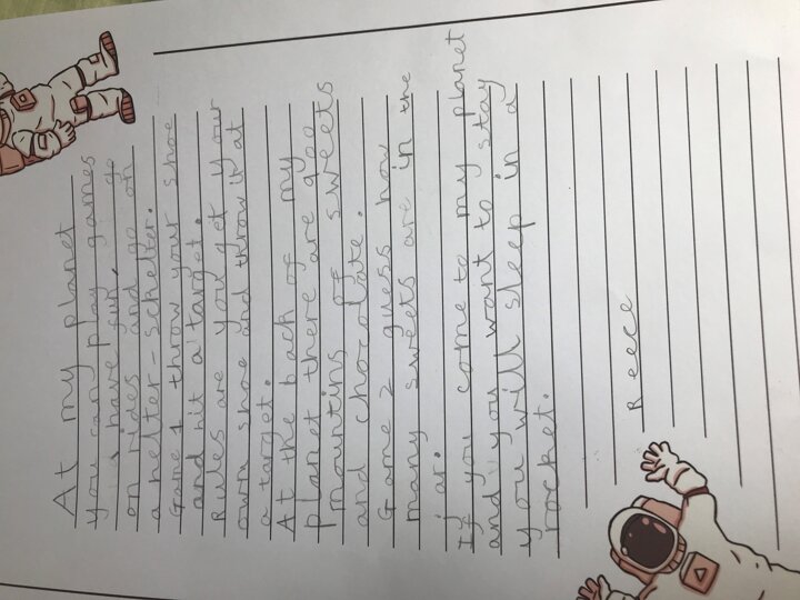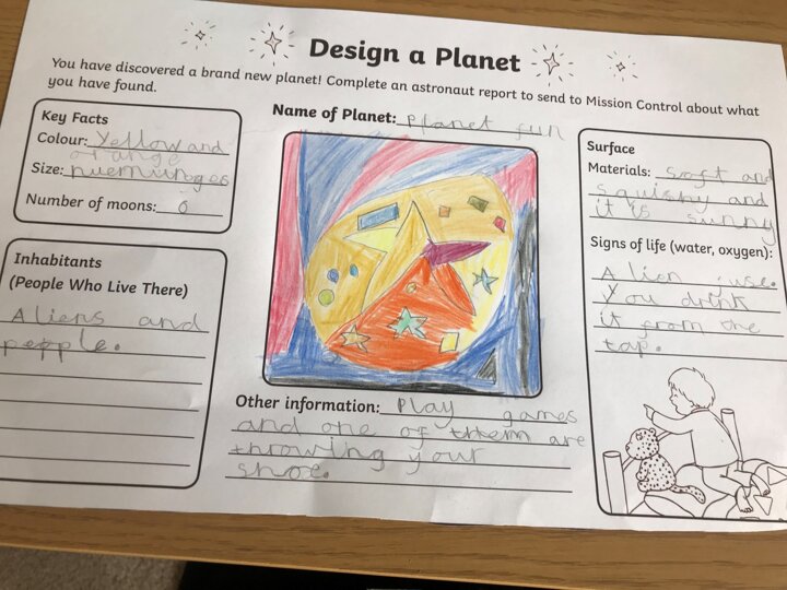 This week Reece, Year 2, has been super busy learning all about space and practising his maths too. We are very impressed and have enjoyed seeing all of your hard work! I think we have a little astronaut in the making.
