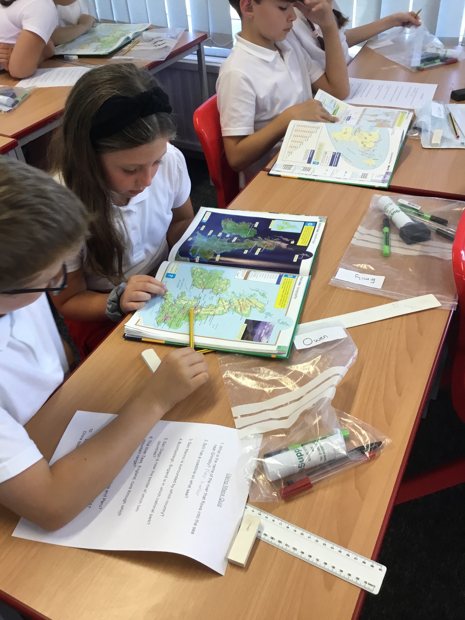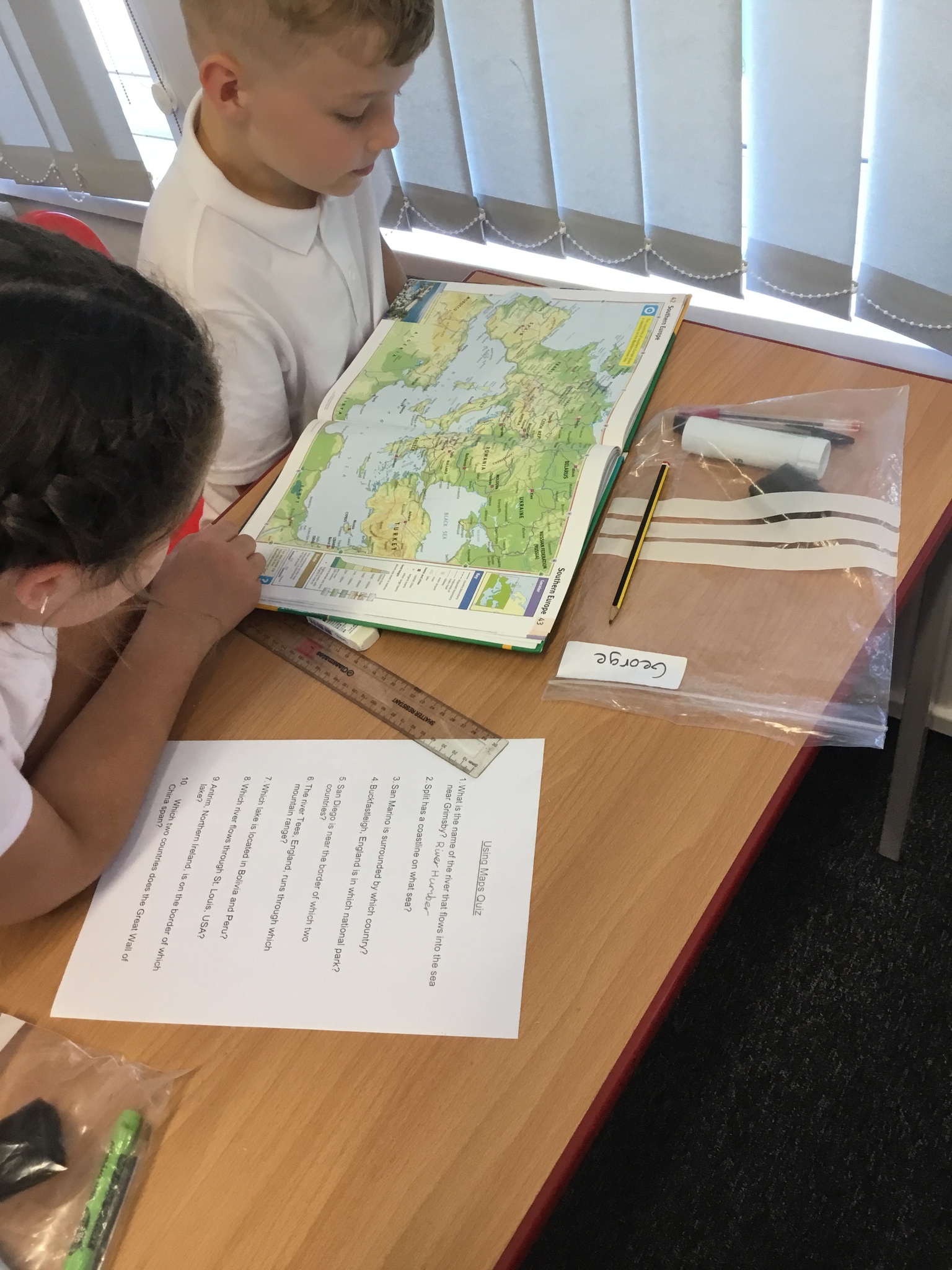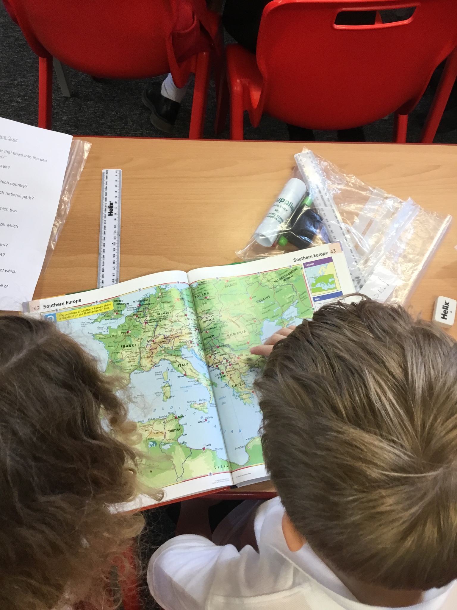 To begin our topic ‘Town and Country’, we were given a map quiz and had to use our atlas skills to find the answers. Some of the mountain ranges and towns were tricky to find, however we used what we knew about atlases to search through the index.