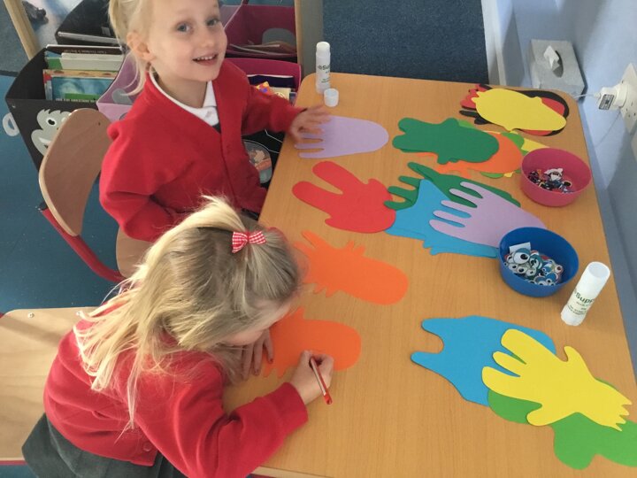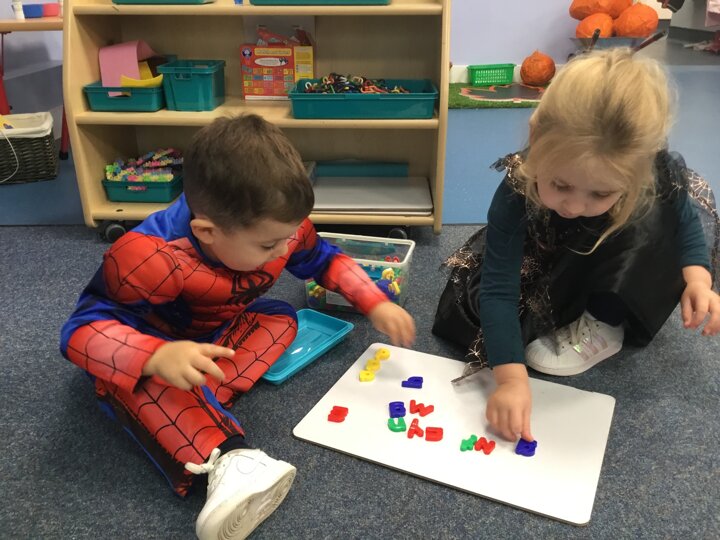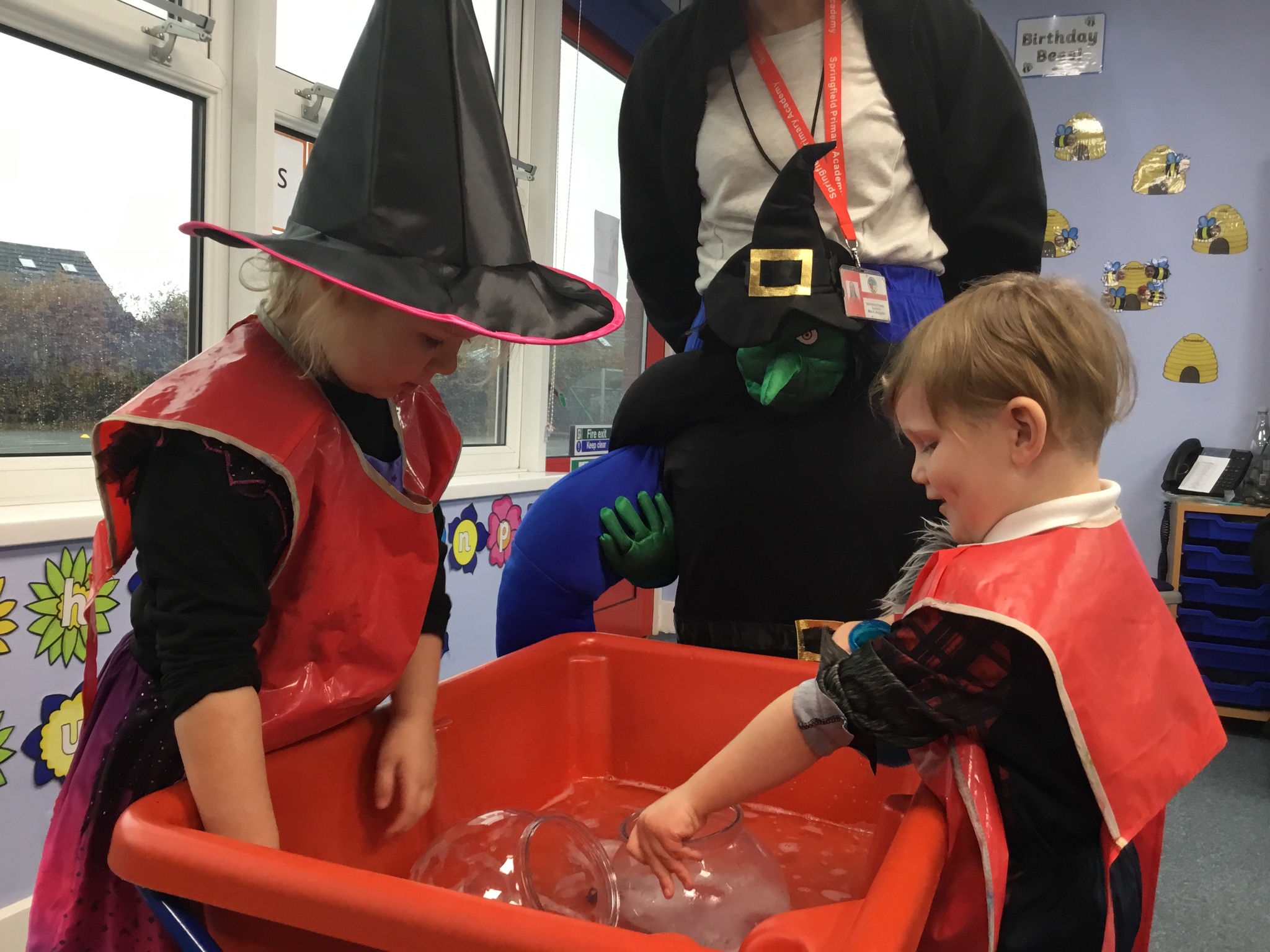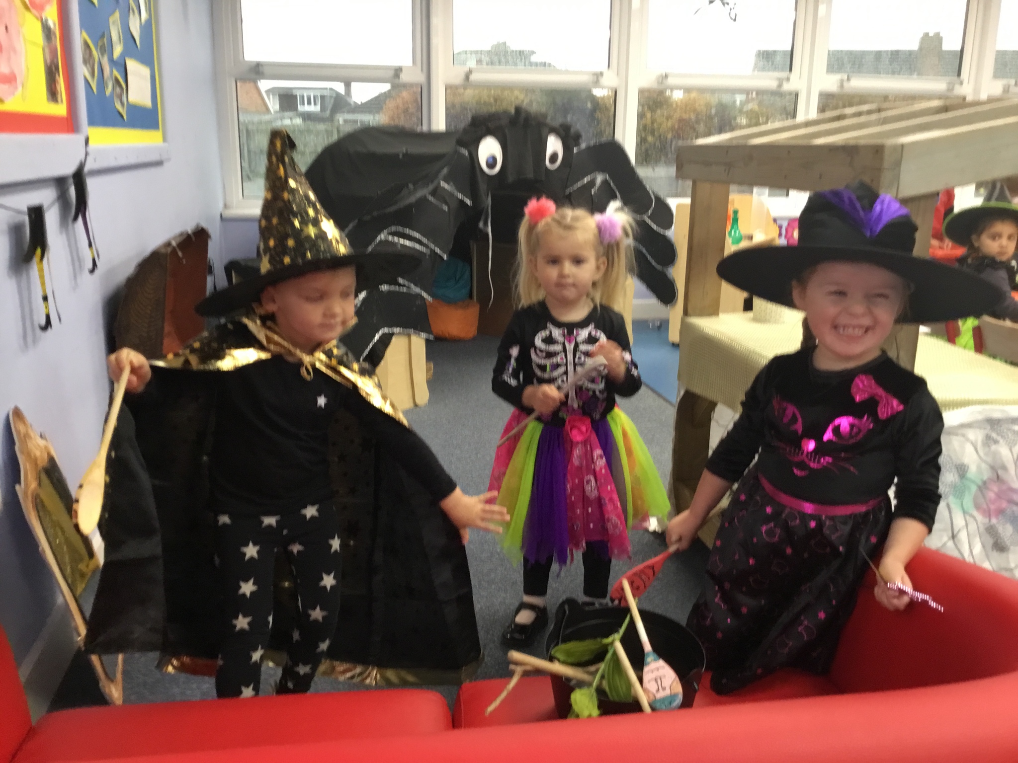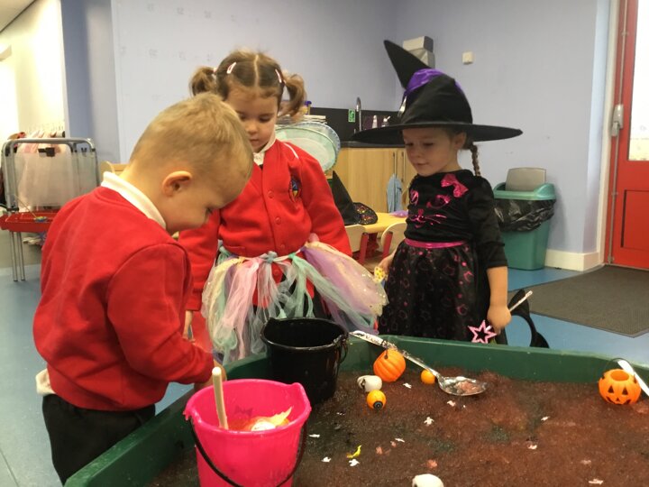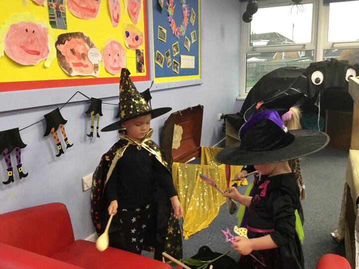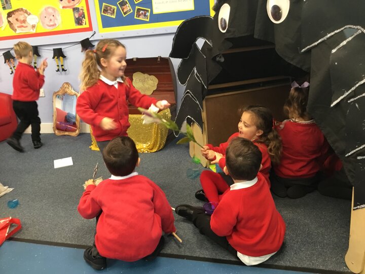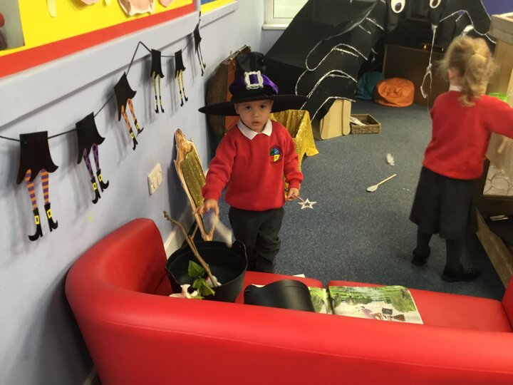 The children enjoyed a fun filled Room on the Broom activity week. We acted out the story in our role play area, explored rhyming words and loved finding the spooky objects in the slime.
