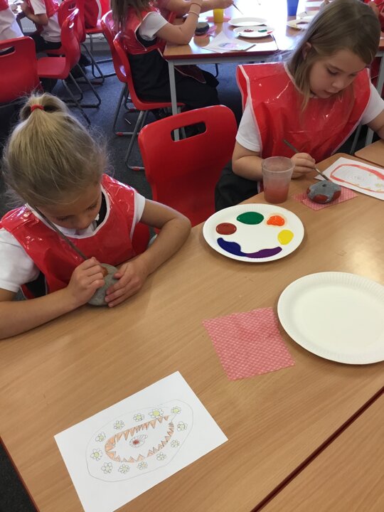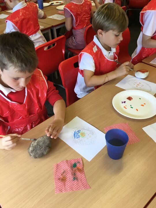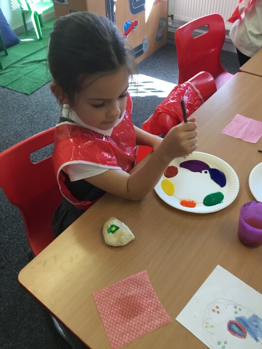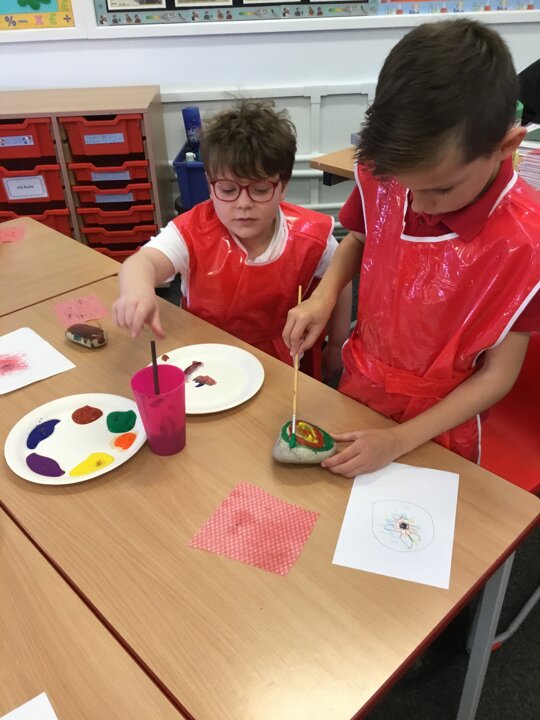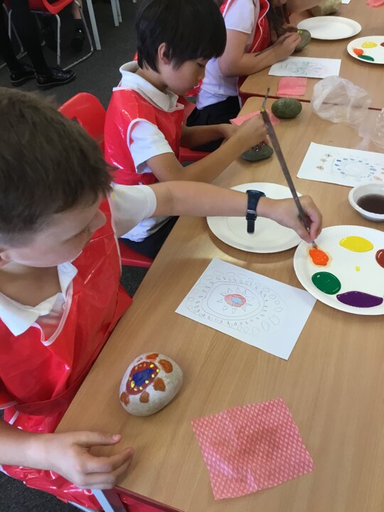 29 September 2021 Laura Robinson Years 3 and 4 We had so much fun creating our own rangoli patterns onto our pebbles. We designed them and then carefully painted our patterns. We can’t wait to display them around school for you all to see during Divali! Rangoli patterns RE Art and Design