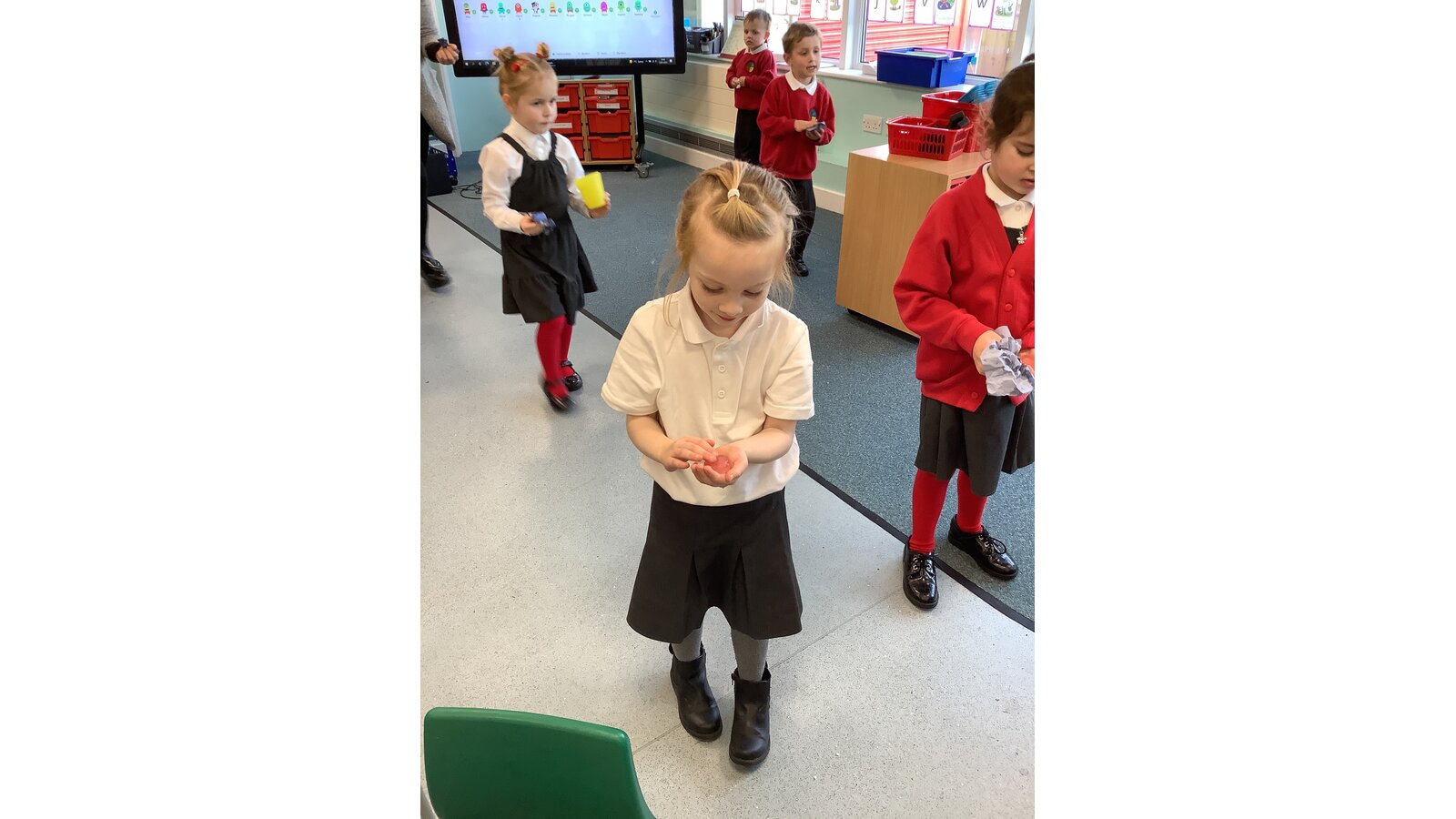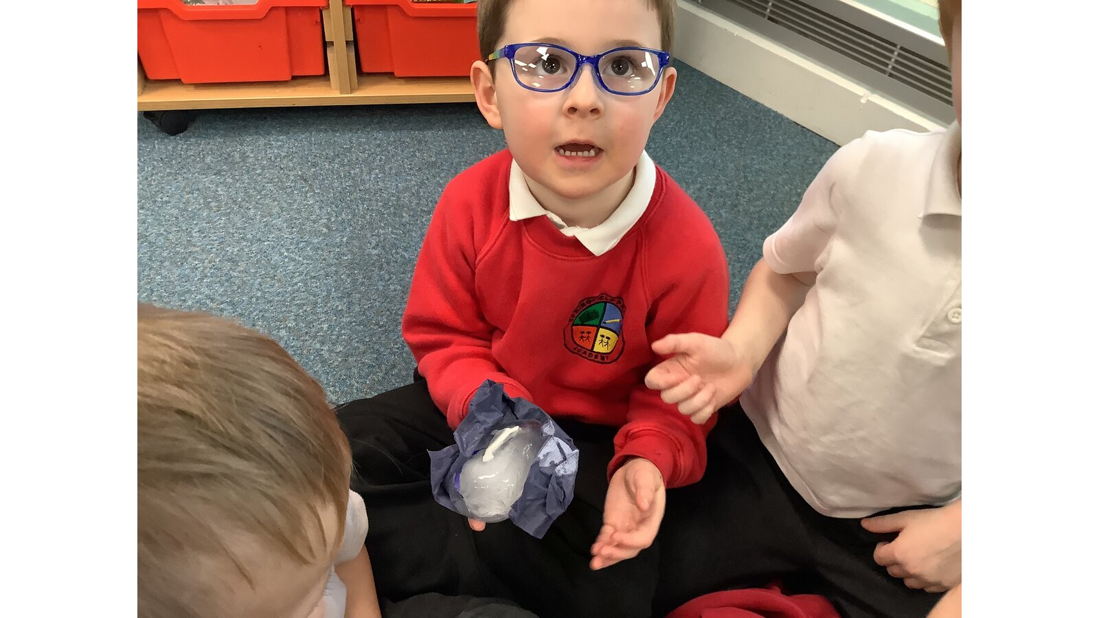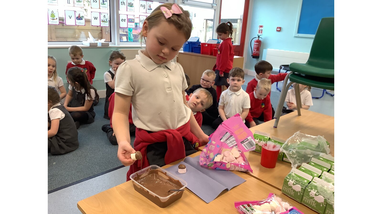 This week we have been exploring melting and freezing. We have learnt lots of new words like frozen, solid, liquid, melting and temperature. We used the freezer to freeze water then tried different ways to melt the ice. The warm water melted the ice the fastest. We also melted some chocolate using the heat from the microwave. We watched it change from hard and solid to runny, hot and dripping! We dipped in some marshmallows just to check it still tasted as good once it was melted. It did!