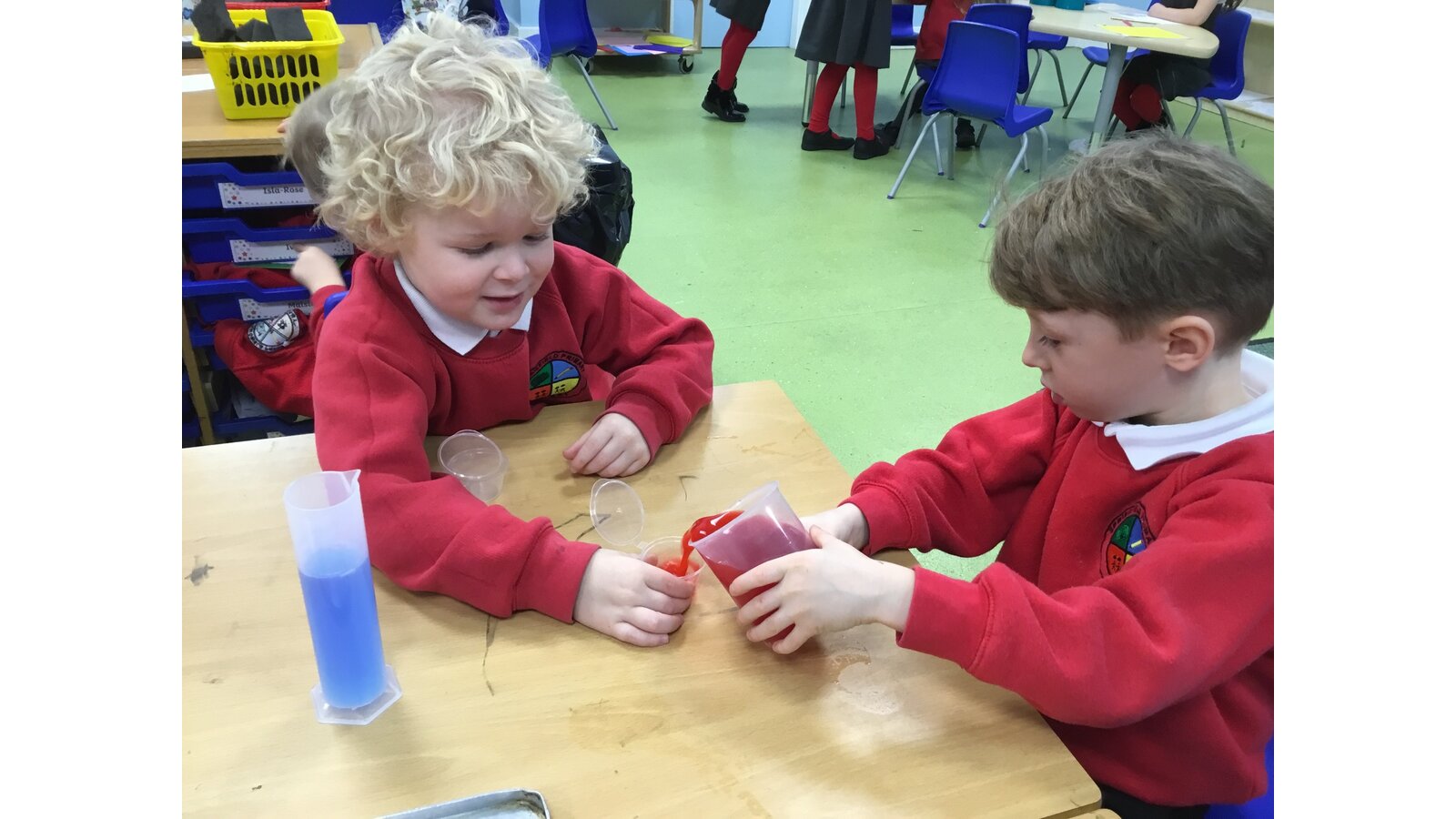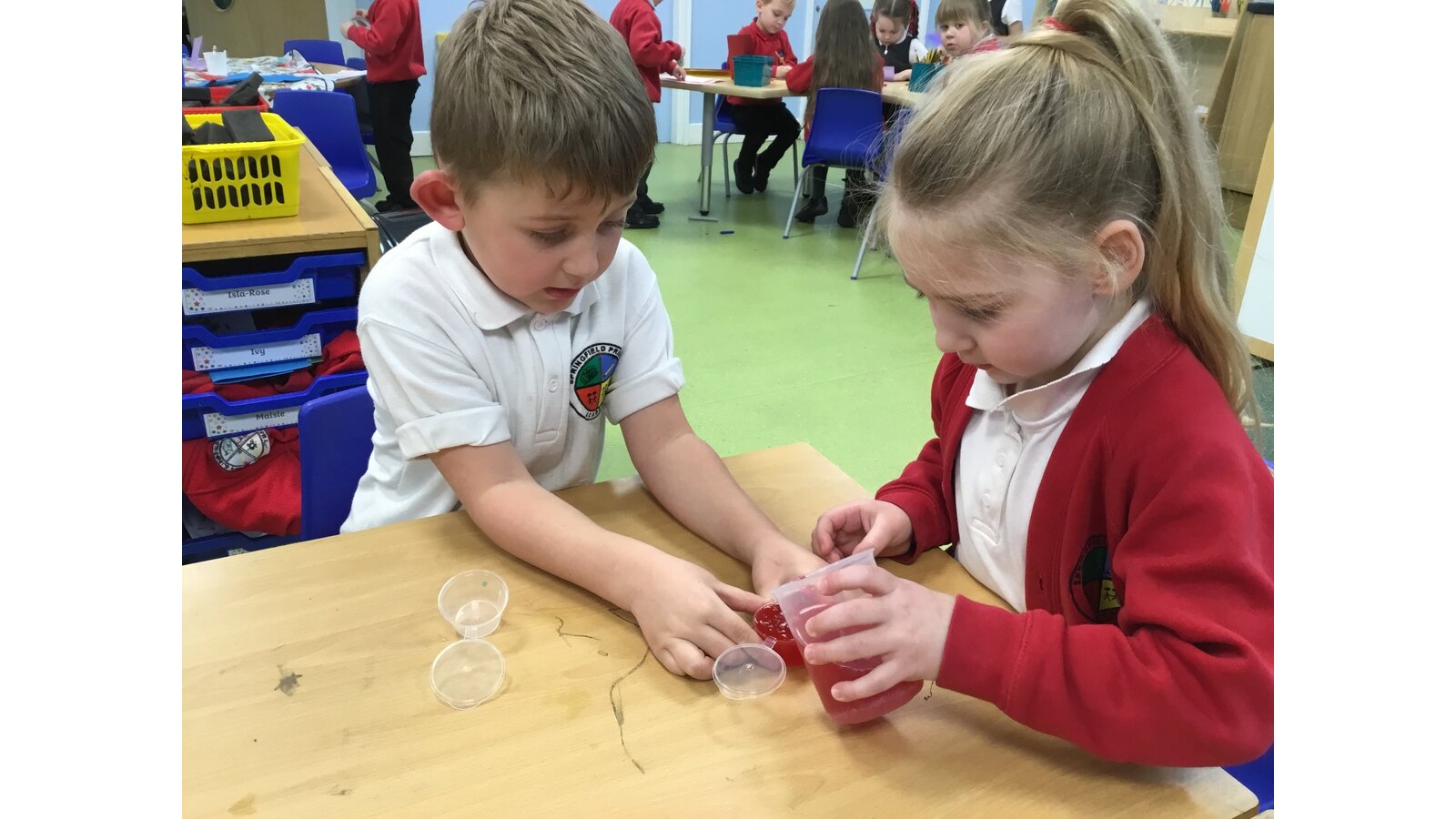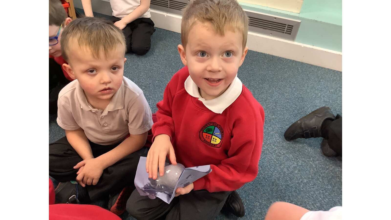 This week we have been exploring melting and freezing. We have learnt lots of new words like frozen, solid, liquid, melting and temperature. We used the freezer to freeze water then tried different ways to melt the ice. The warm water melted the ice the fastest. We also melted some chocolate using the heat from the microwave. We watched it change from hard and solid to runny, hot and dripping! We dipped in some marshmallows just to check it still tasted as good once it was melted. It did!