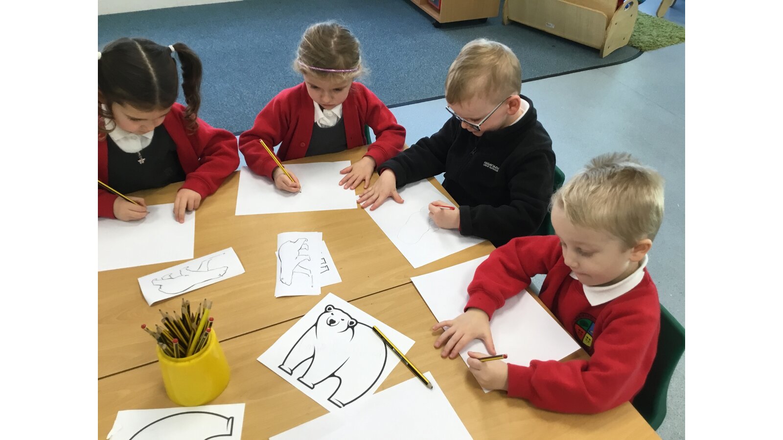 10 February 2022 Tina Storr Foundation Stage This week we have enjoyed practising drawing our own polar bear. We spent time looking at different images and recreating our own. We carefully used a range of straight and curved lines. They then created their own chalk polar bear. Previous Next Art and Design Reception physical development Understanding the world