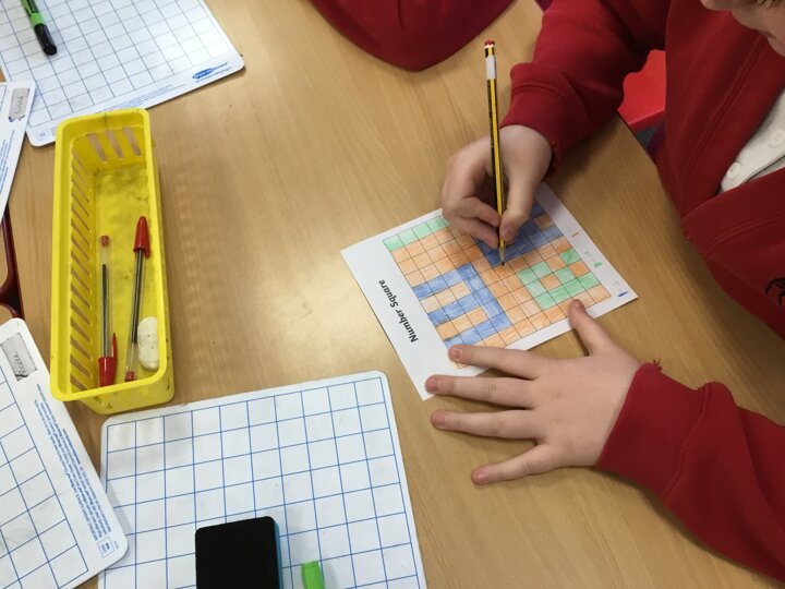 Today’s maths was a practical session getting to grips with tenths and hundredths. The children worked together to create patterns for their partners to find the fractions.