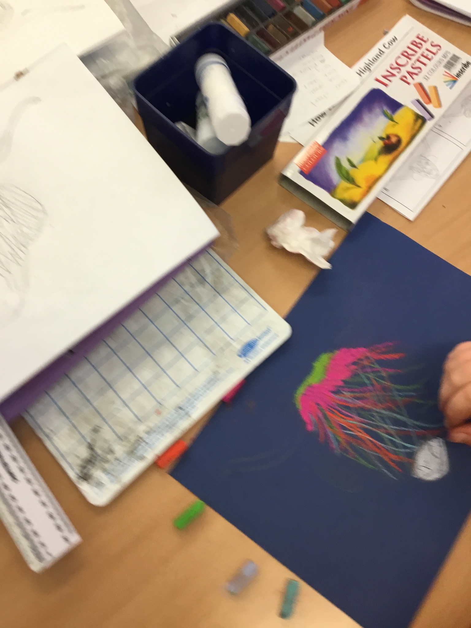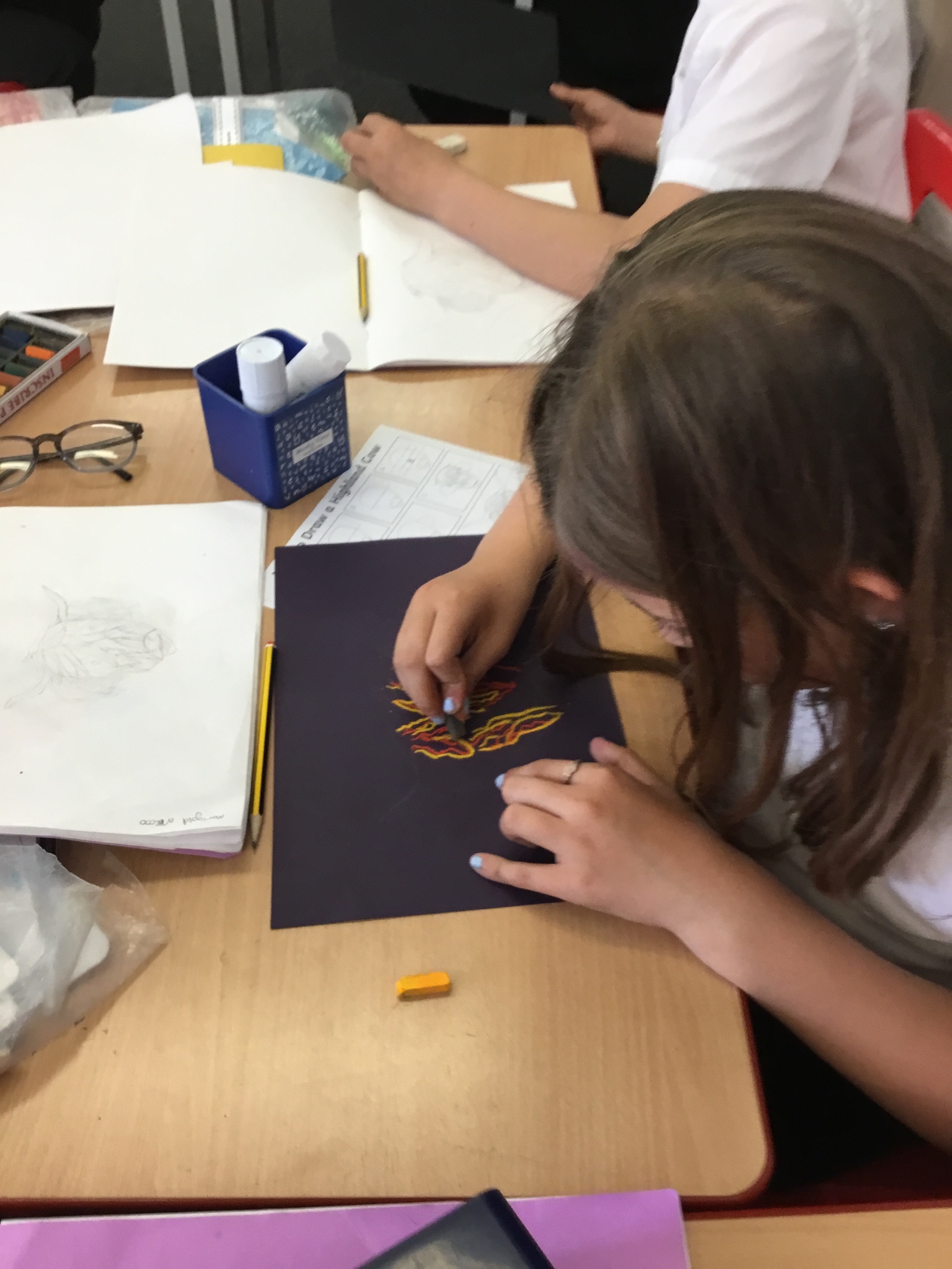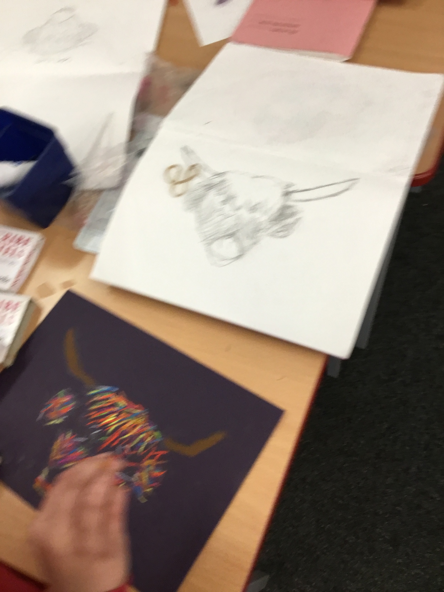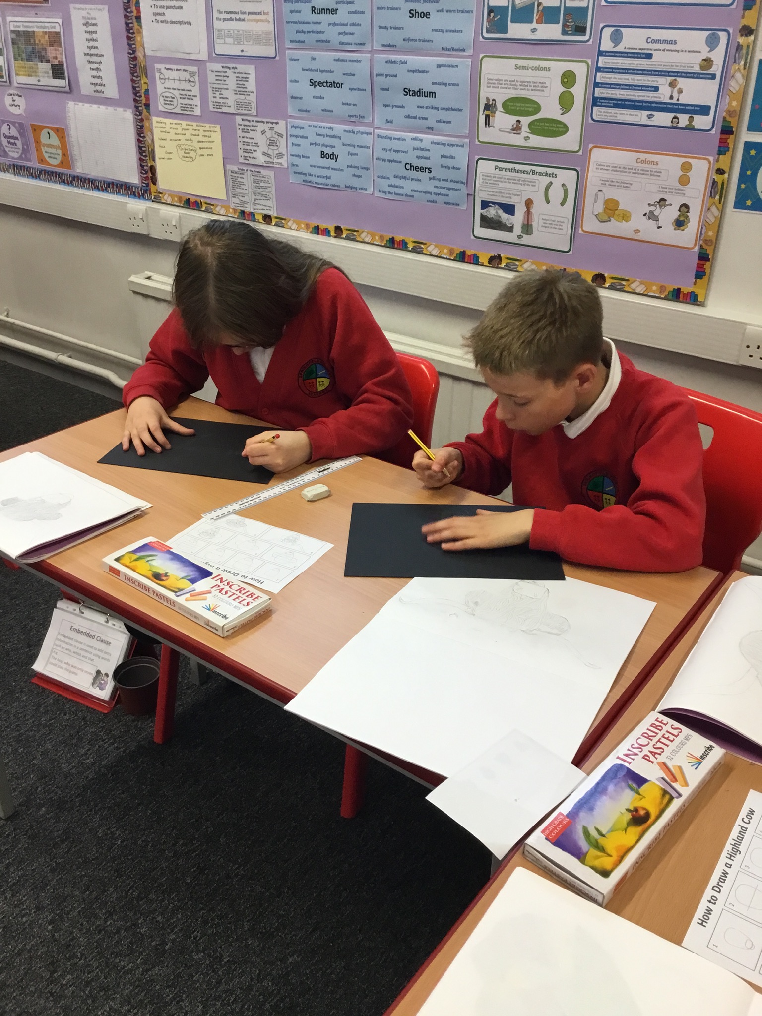In art this week, Year 5 and 6 have been replicating the artwork of Steven Brown’s famous McCoo paintings. We started by sketching a highland cow following a step by step guide. Once we were confident with our sketches, we then redrew them onto dark card with a pencil. We then added brightly coloured sweeps of pastel crayons to create the texture of the hair. We loved how bright and vibrant the end results were.