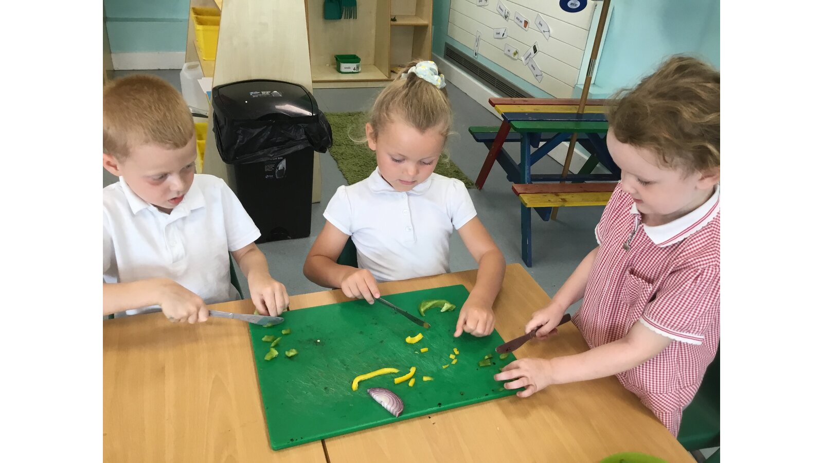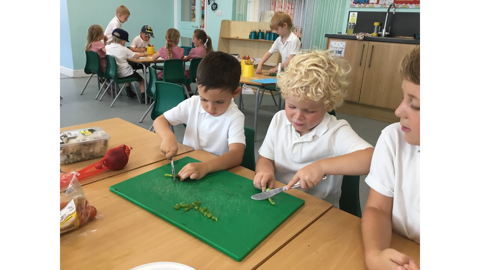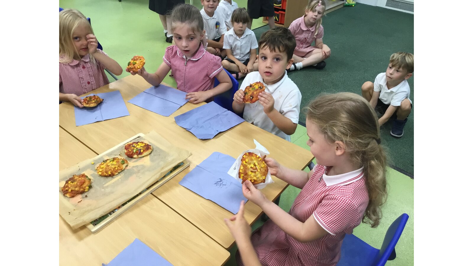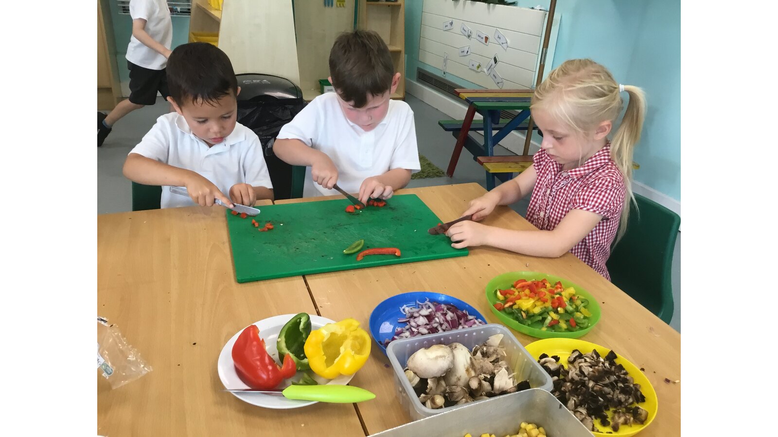 We had a great day yesterday making vegetable pizzas! After learning about how vegetables and fruits grow, we were keen to give some of them a try. We read Oliver’s Vegetables and discussed the different places that vegetables can be grown. Our pizzas tasted pretty good and we have really improved our cutting skills chopping all of those vegetables!