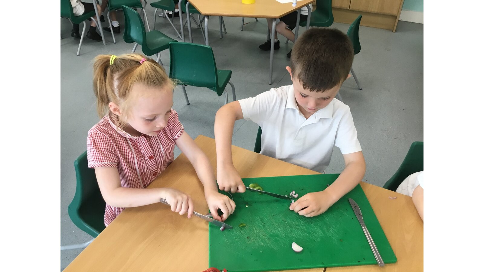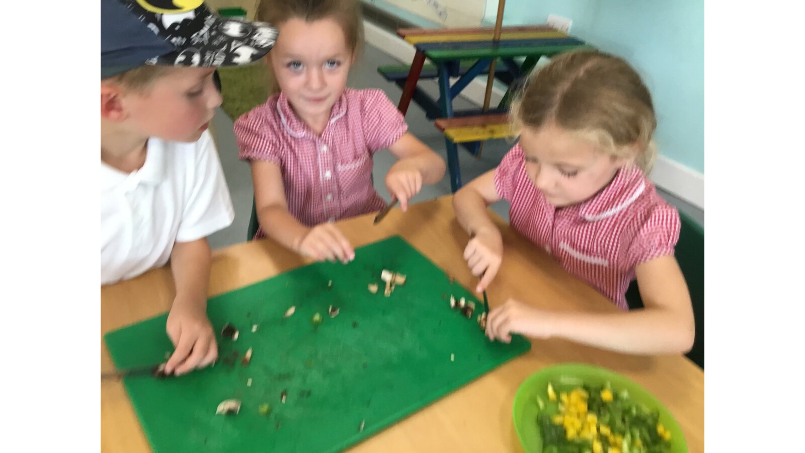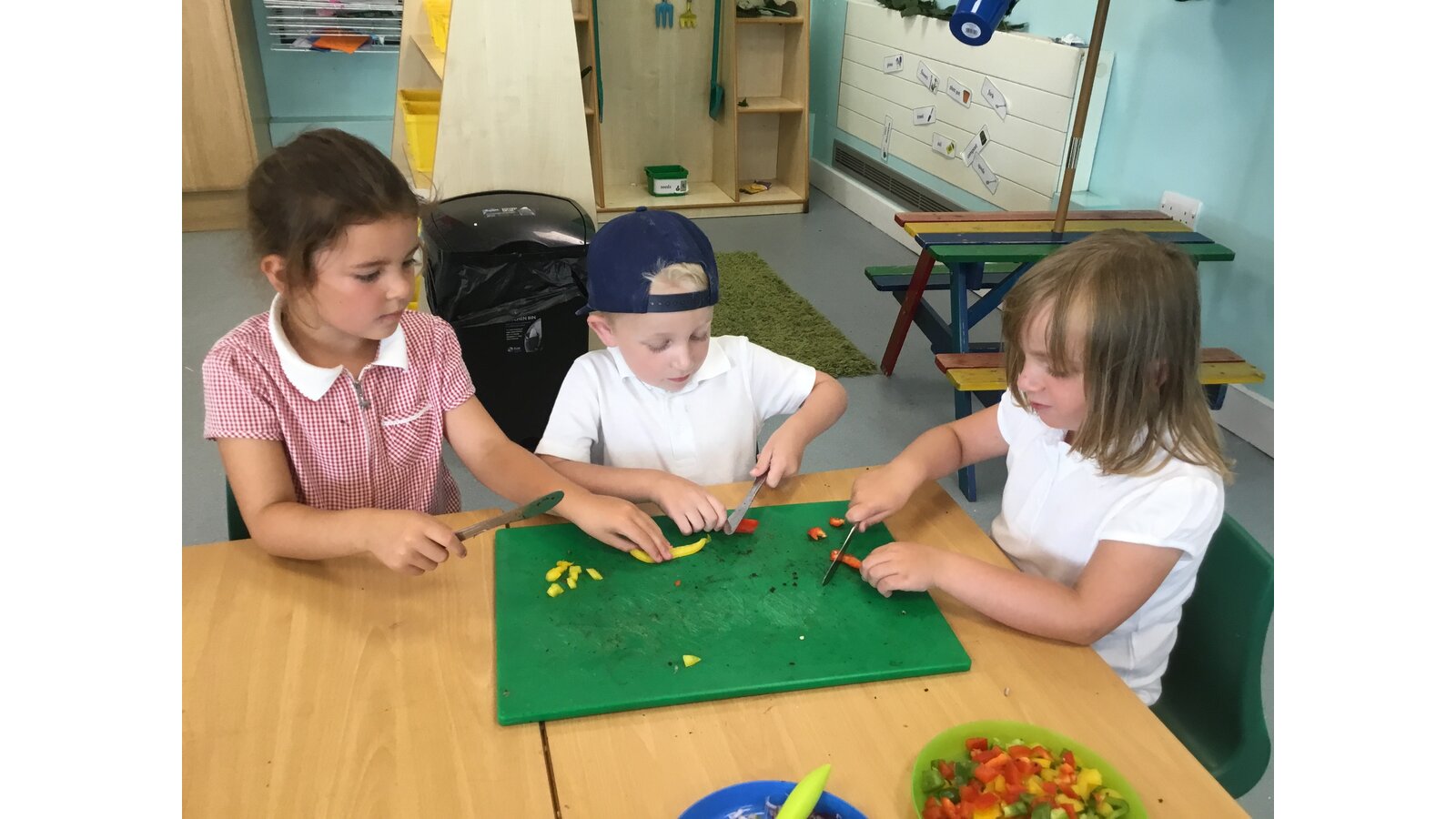 We had a great day yesterday making vegetable pizzas! After learning about how vegetables and fruits grow, we were keen to give some of them a try. We read Oliver’s Vegetables and discussed the different places that vegetables can be grown. Our pizzas tasted pretty good and we have really improved our cutting skills chopping all of those vegetables!