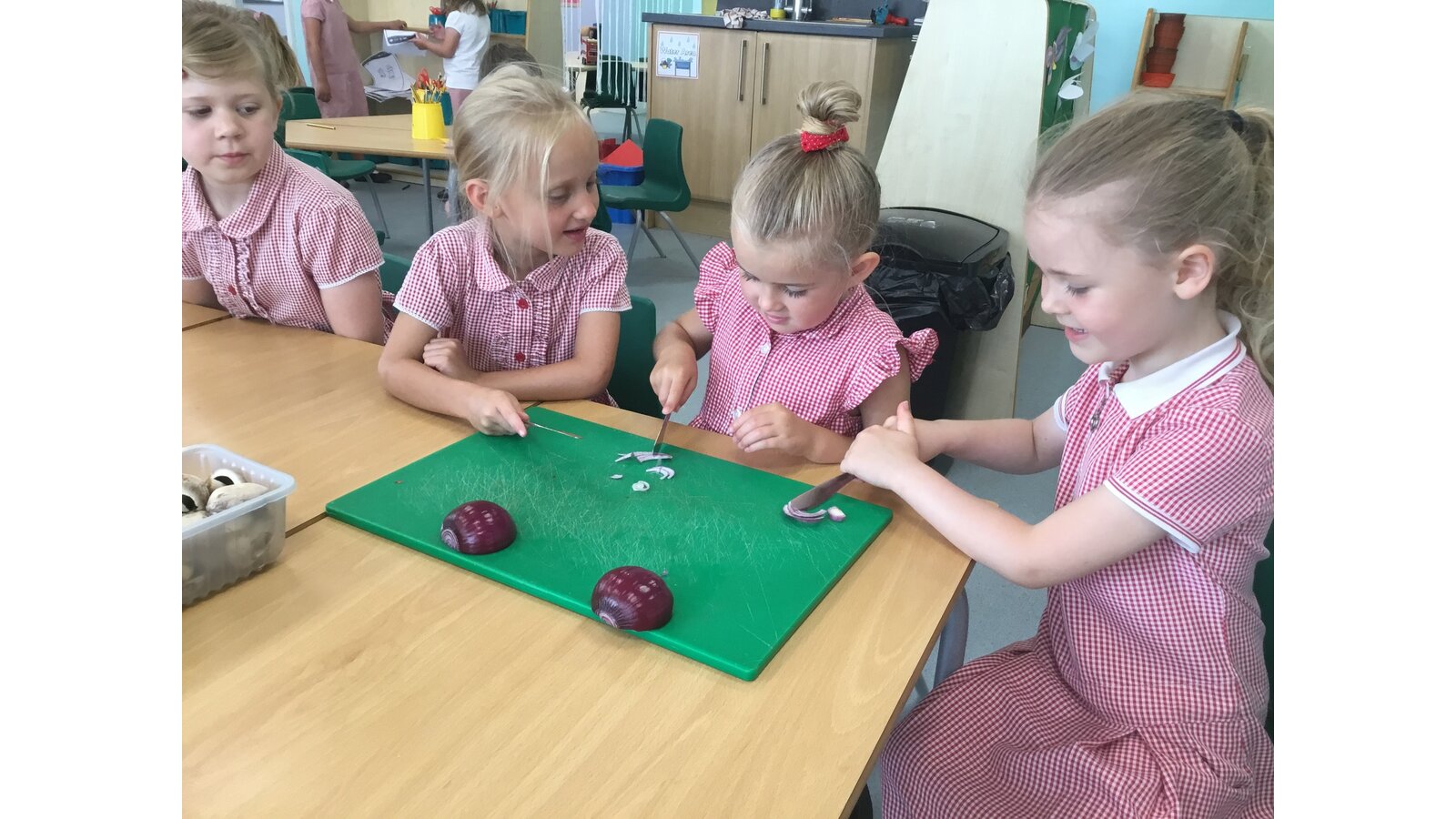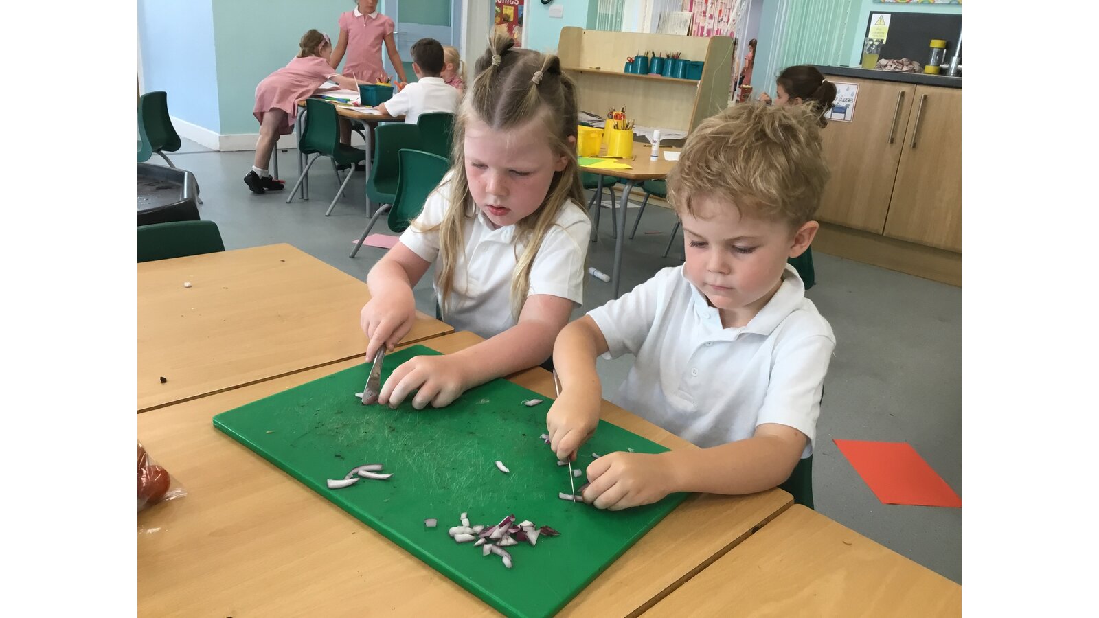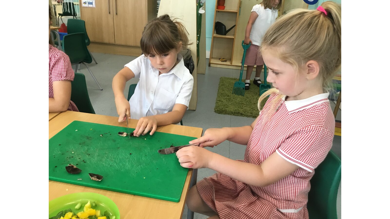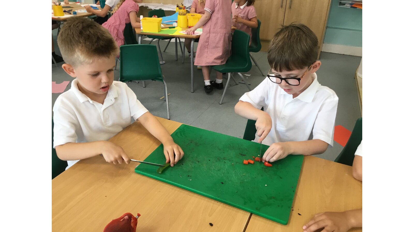 We had a great day yesterday making vegetable pizzas! After learning about how vegetables and fruits grow, we were keen to give some of them a try. We read Oliver’s Vegetables and discussed the different places that vegetables can be grown. Our pizzas tasted pretty good and we have really improved our cutting skills chopping all of those vegetables!