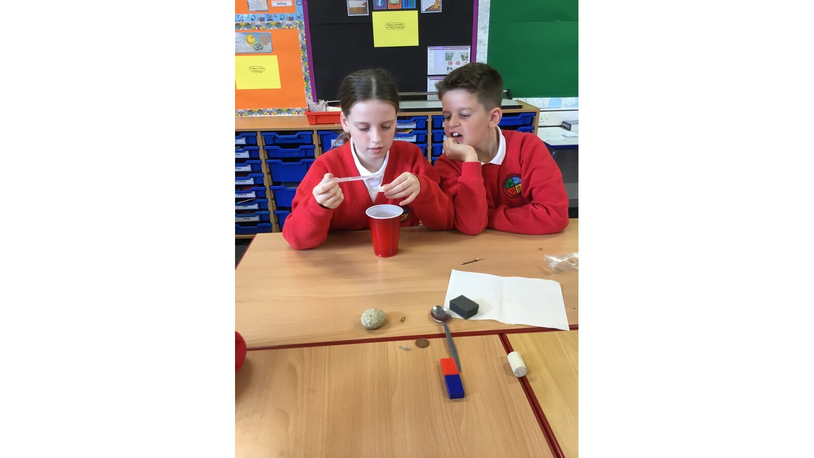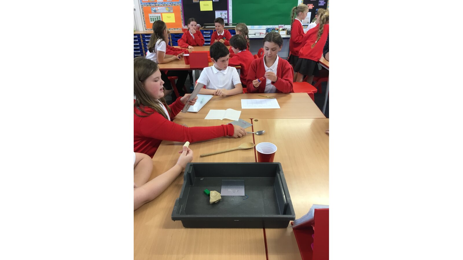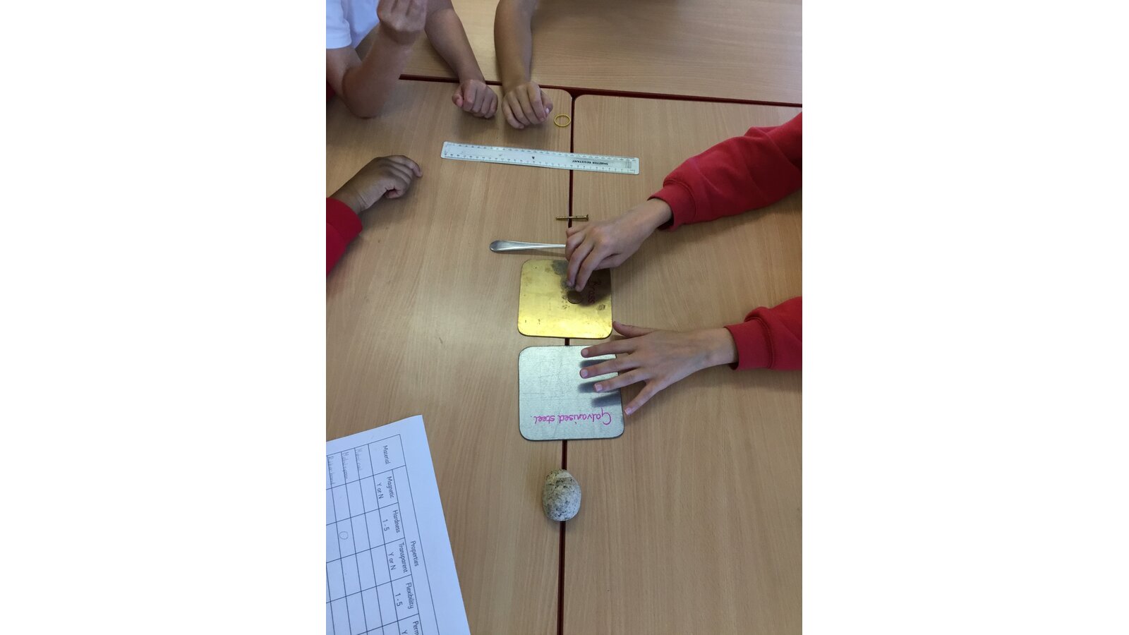 In our Science topic of Properties and changes of materials, our first lesson was to work in groups testing the properties of a variety of different materials. We looked at whether they were magnetic, flexible, transparent, hard and permeable. The materials we tested ranged from wooden spoons and Lego pieces to stainless steel and cork. We then presented our findings on a table which clearly showed each material’s properties.