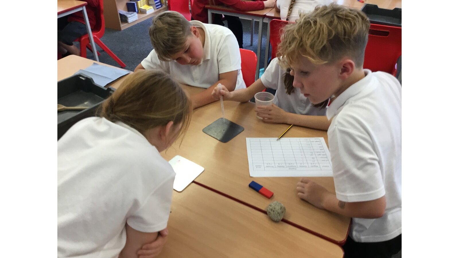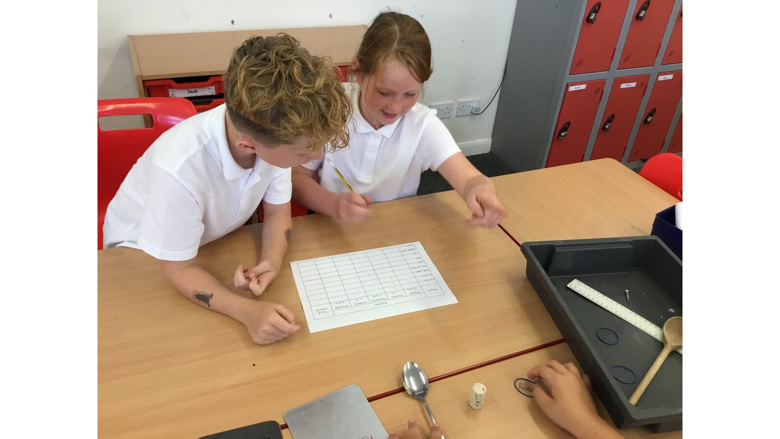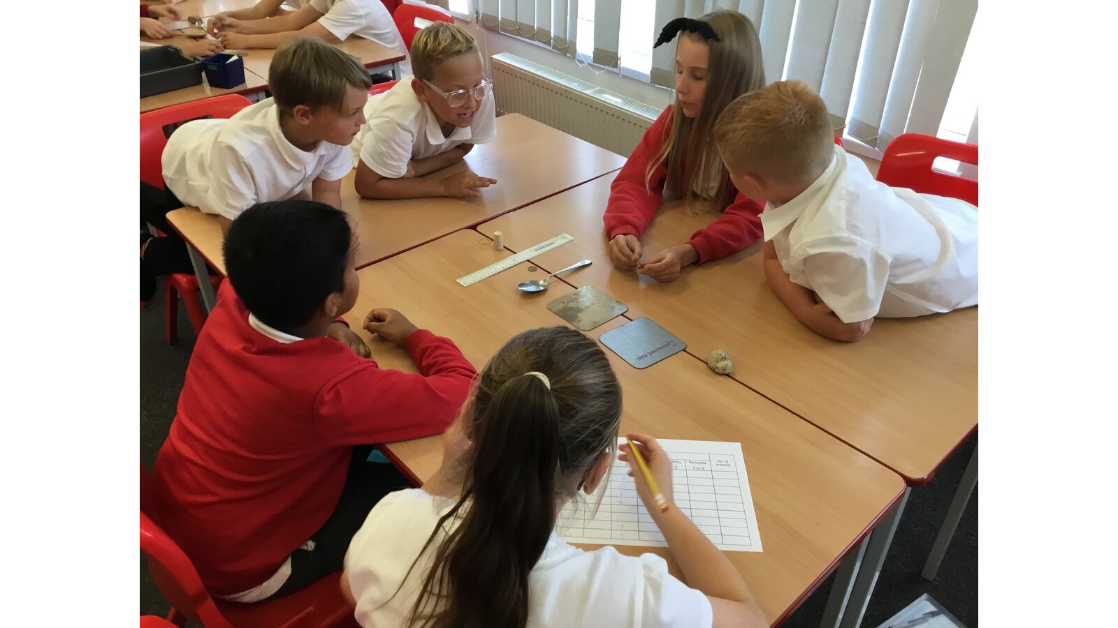 In our Science topic of Properties and changes of materials, our first lesson was to work in groups testing the properties of a variety of different materials. We looked at whether they were magnetic, flexible, transparent, hard and permeable. The materials we tested ranged from wooden spoons and Lego pieces to stainless steel and cork. We then presented our findings on a table which clearly showed each material’s properties.