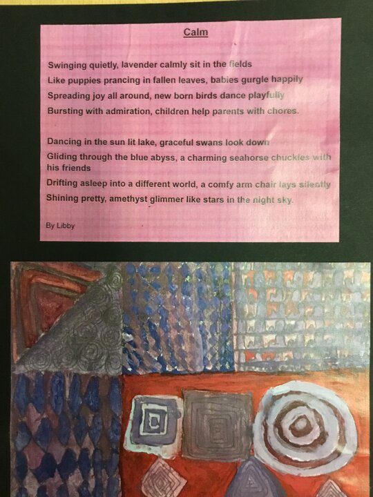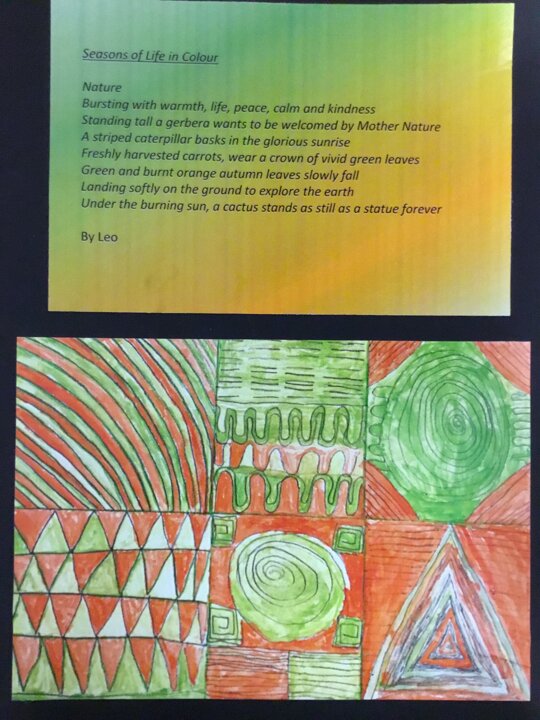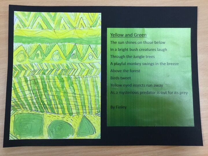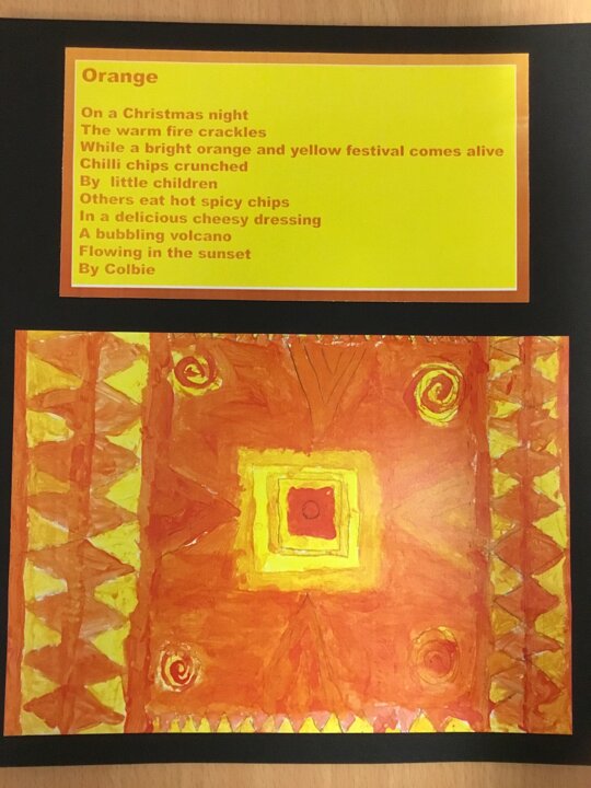 Miss Appleby’s class have used watercolours to create their own Christmas cards. They have also been exploring how colours feel through art and poetry.