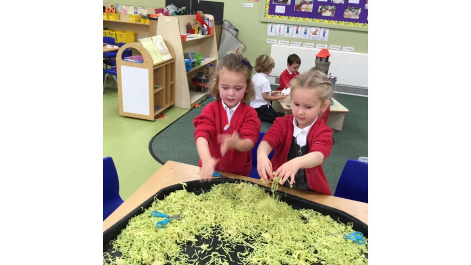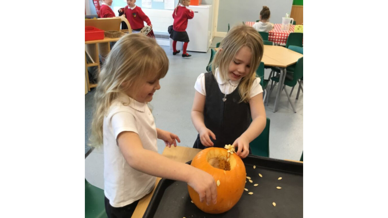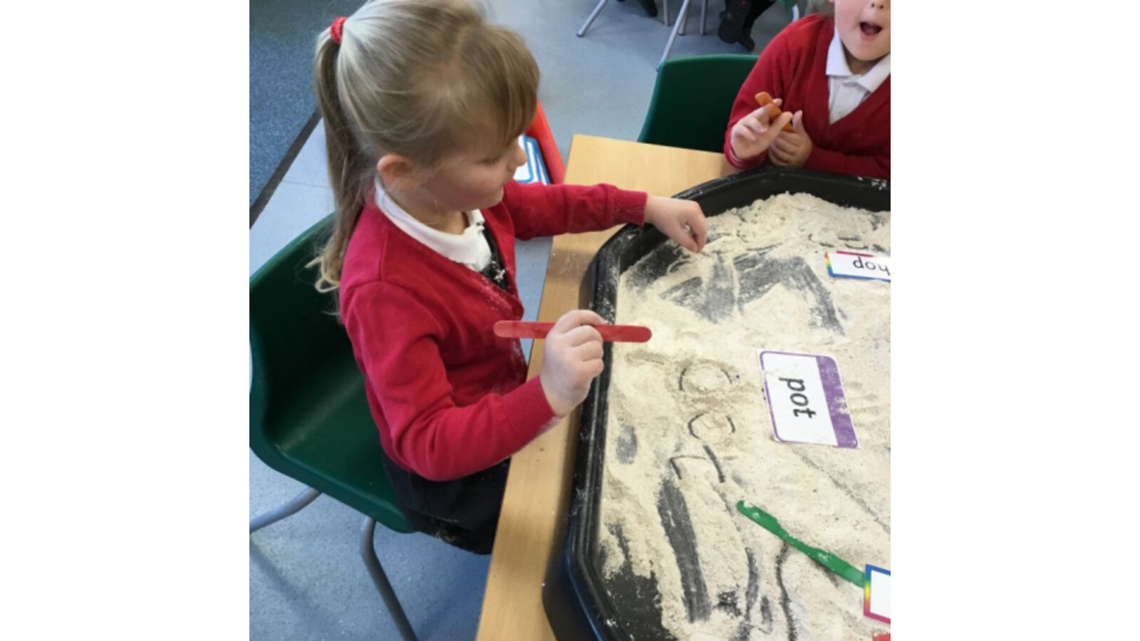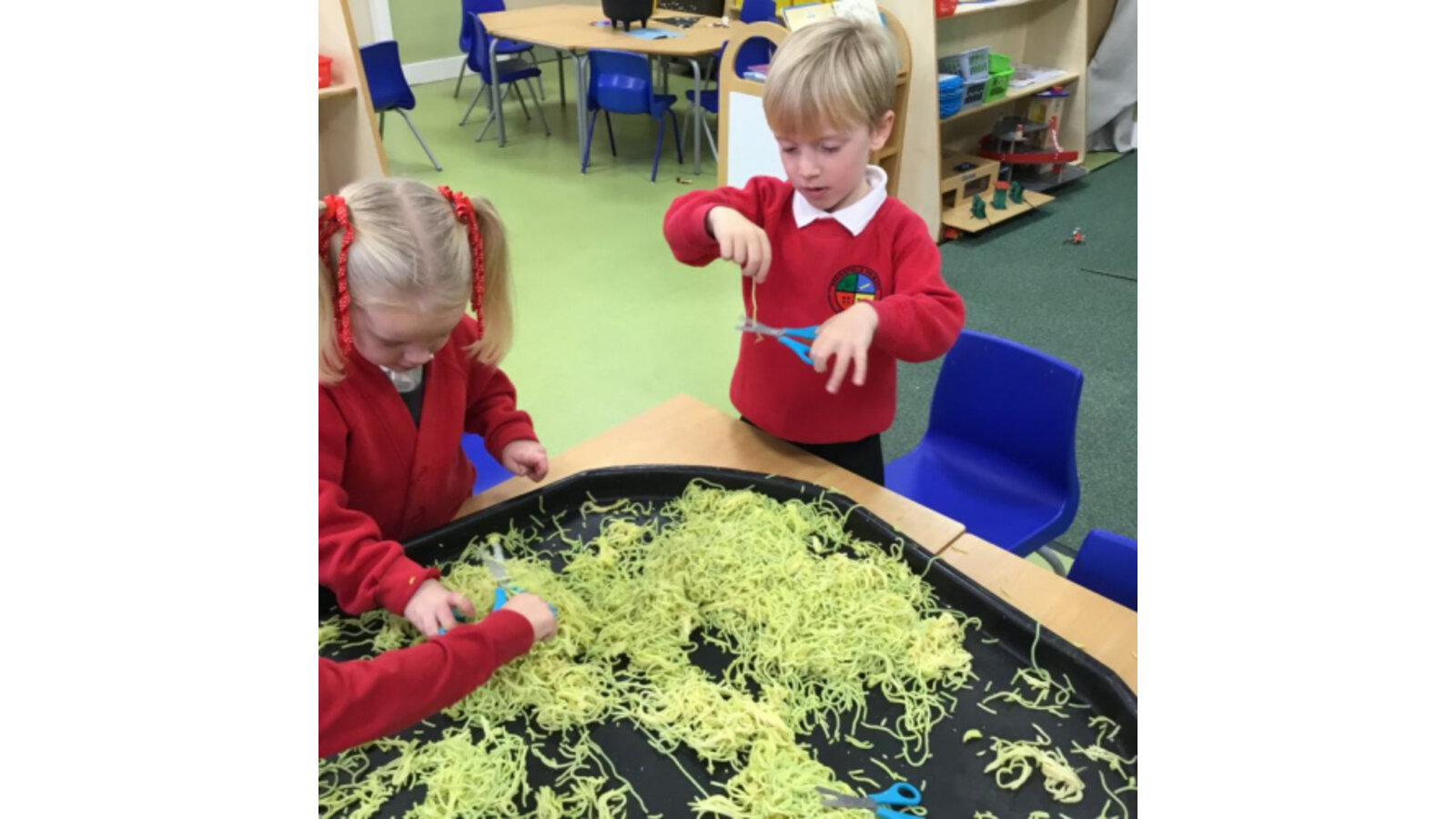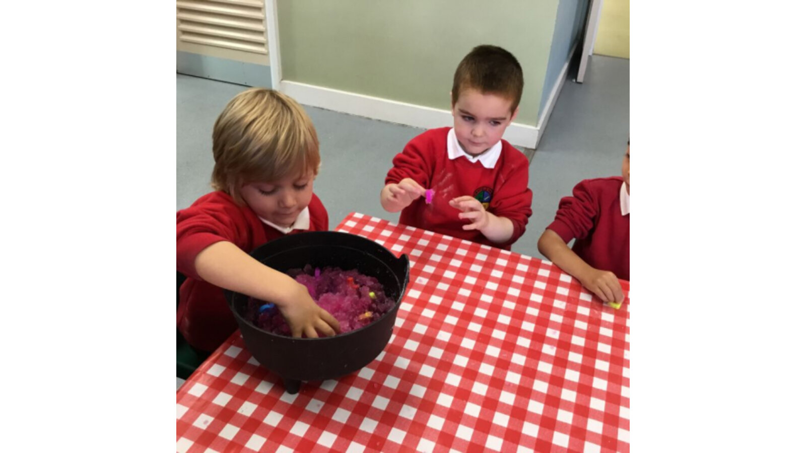 This week we have been reading Room on the Broom by a Julia Donaldson. Lots of the children were familiar with the story already and enjoyed joining in with the parts they knew. We also spotted lots of rhyming words and had fun acting out the story using story spoons. We have shared our Halloween experiences and the children spoke enthusiastically about their costumes. We have been carving pumpkins and exploring their smells and textures. We have also enjoyed cutting up the wiggly worms to different lengths and writing words in the magic dust. We also have some excellent potion makers! In maths we have been counting spiders by lining them up, touching and moving them.