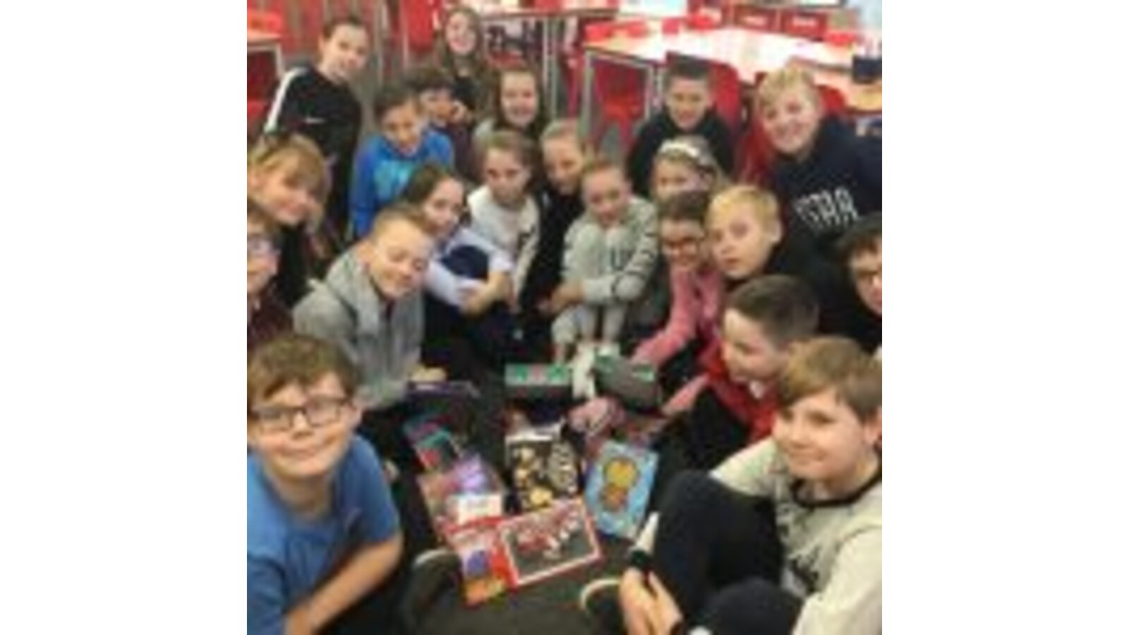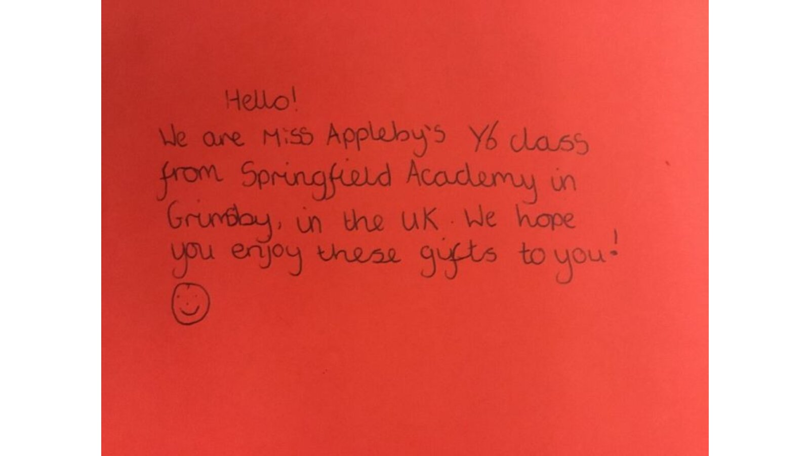 We also put a photo of our class in each box with a message for the lucky recipient.