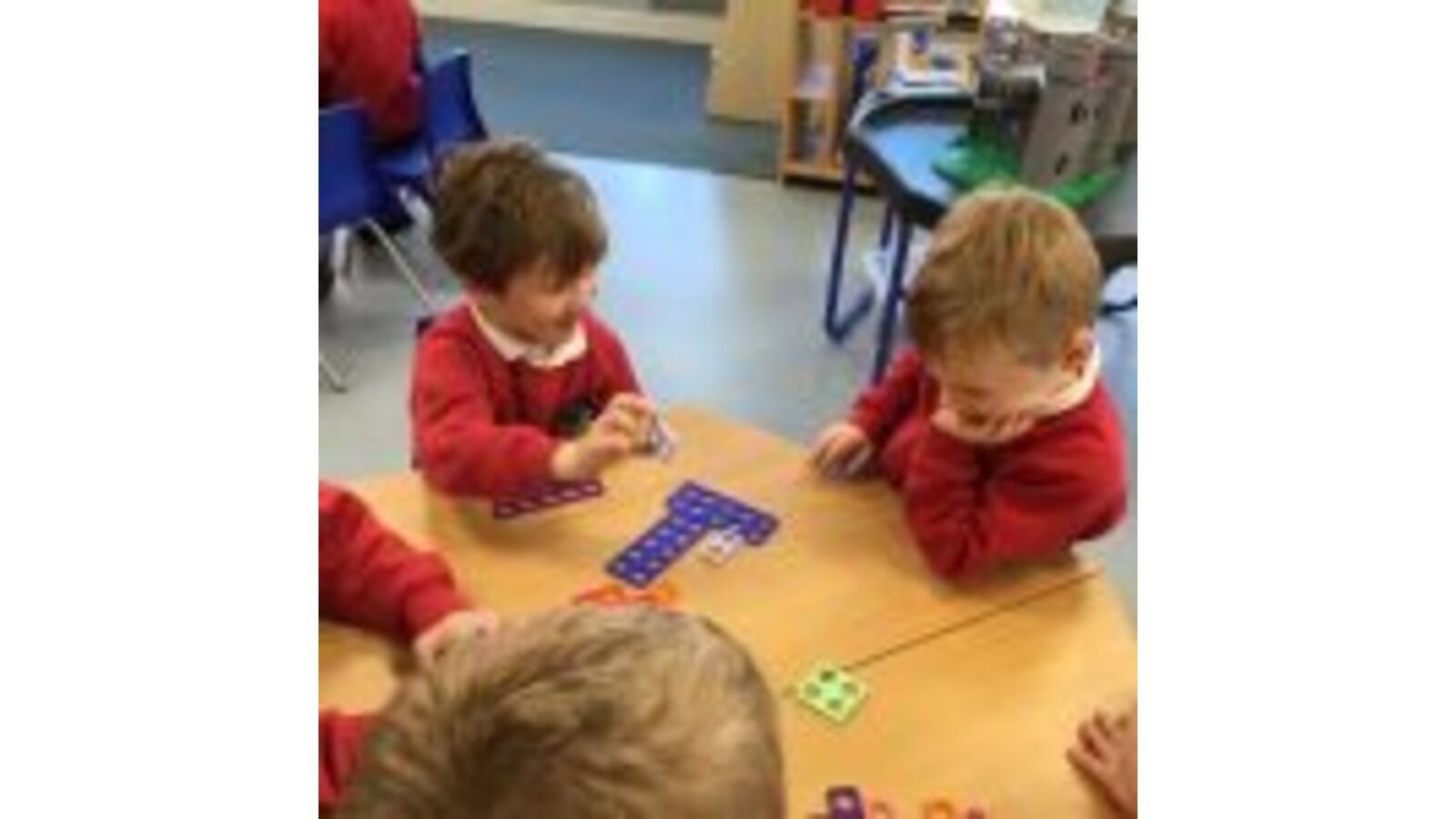 We have been exploring numbers and number shapes using the numicon. The children quickly became confident recognising the number from the shape and colour of the piece. We played matching games, counting games and eventually went on to use the numicon for addition. This resource is fantastic for provoking curiosity around number. While they were playing and exploring, the children began to spontaneously and independently compare, order and combine the shapes & numbers.