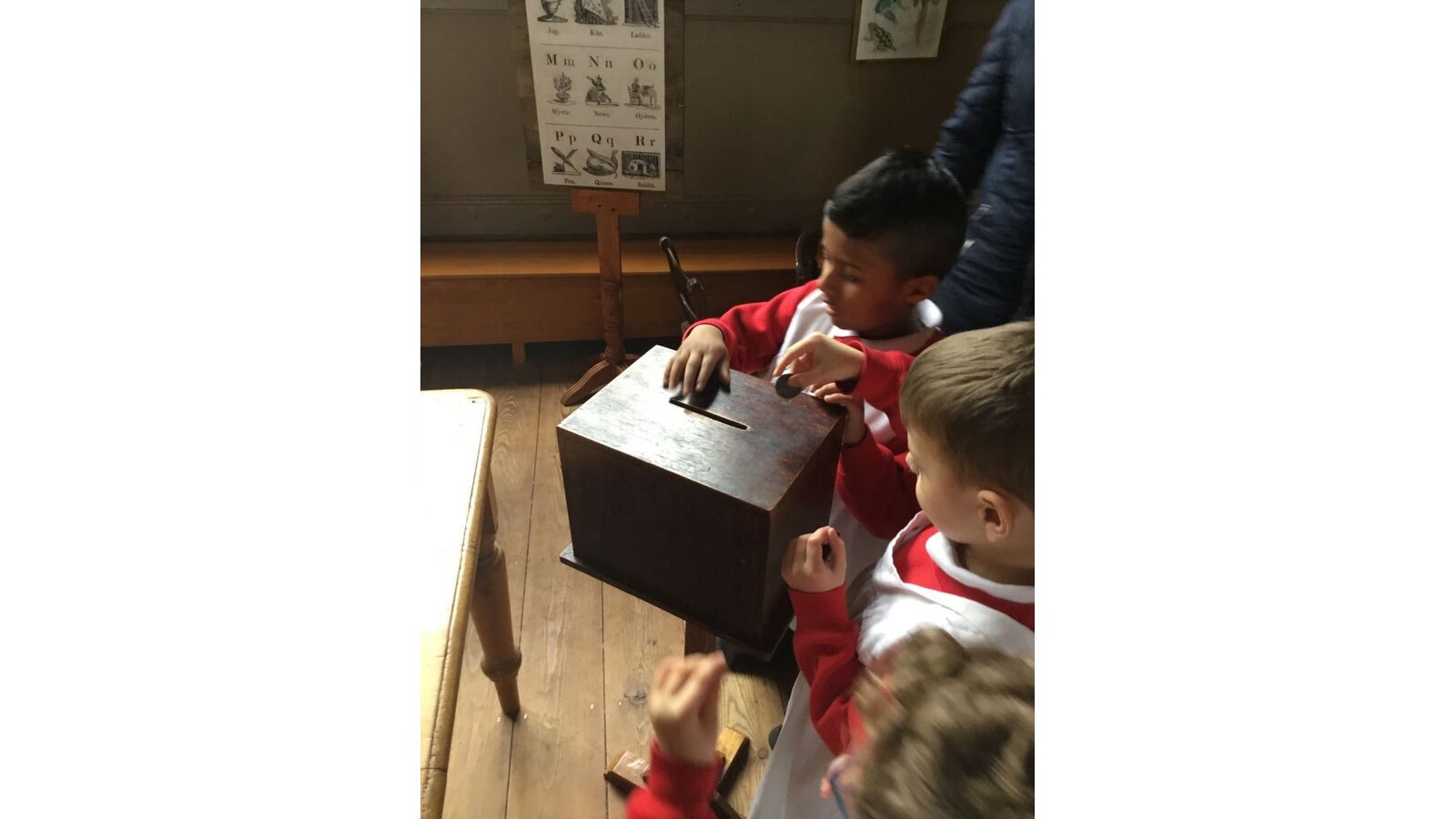 What a fantastic day we have had had at Wilderspin School. First, we looked at and hunted for some of the old artefacts that they had found at Wilderspin. We then had a go at being archaeologists! After lunch, we met a Victorian teacher. We were able to dress up as Victorian children and do some lessons in a Victorian School including marching and times tables – we even had to pay to go to school!
