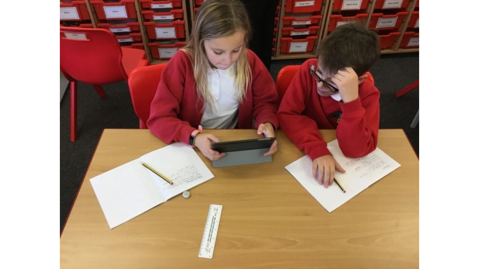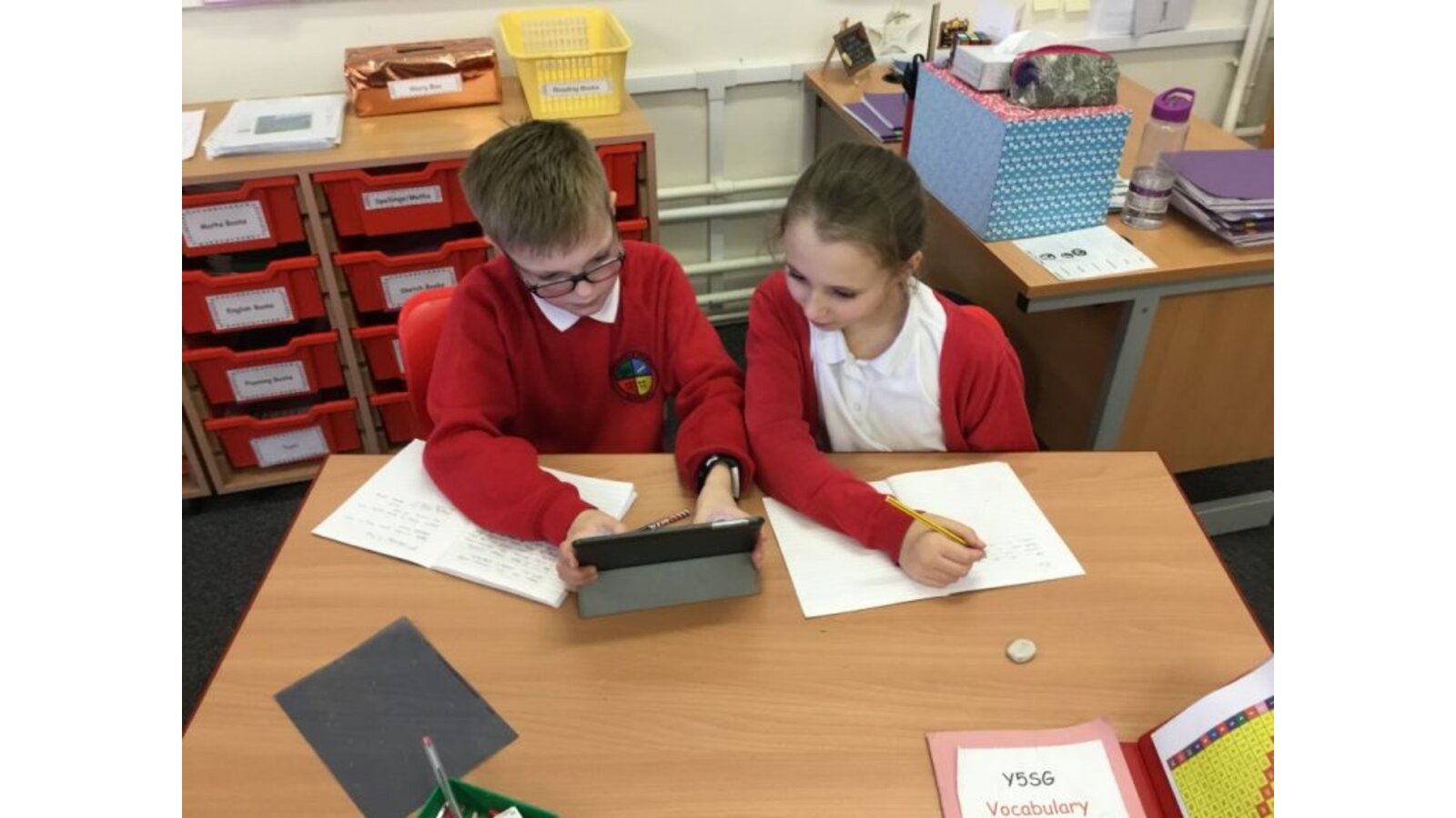 Here are some photos of the children working together to create their glossary.