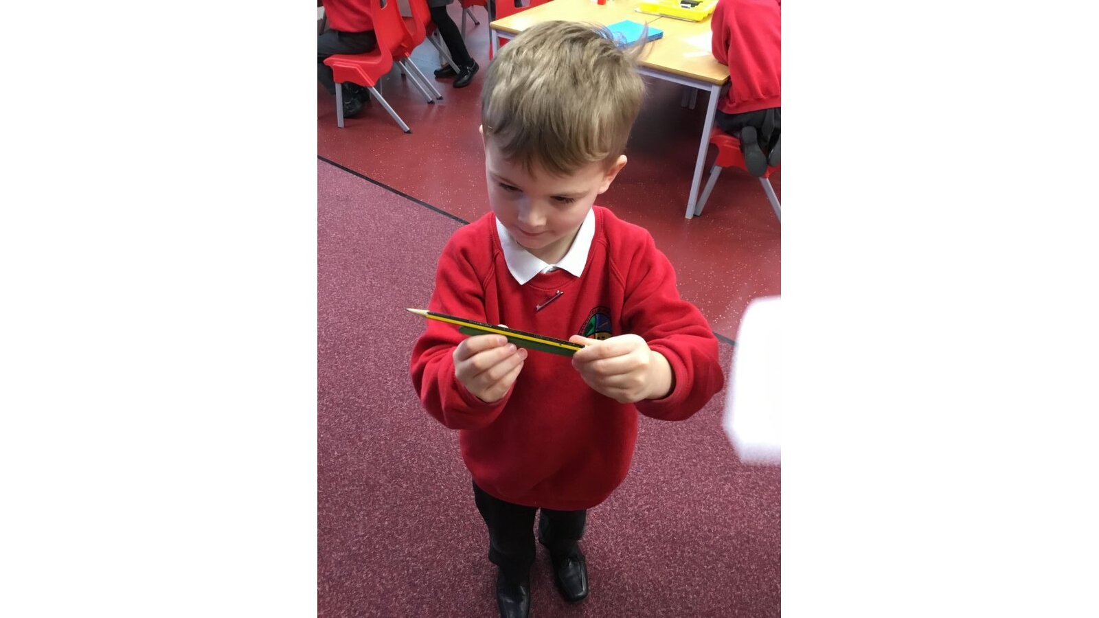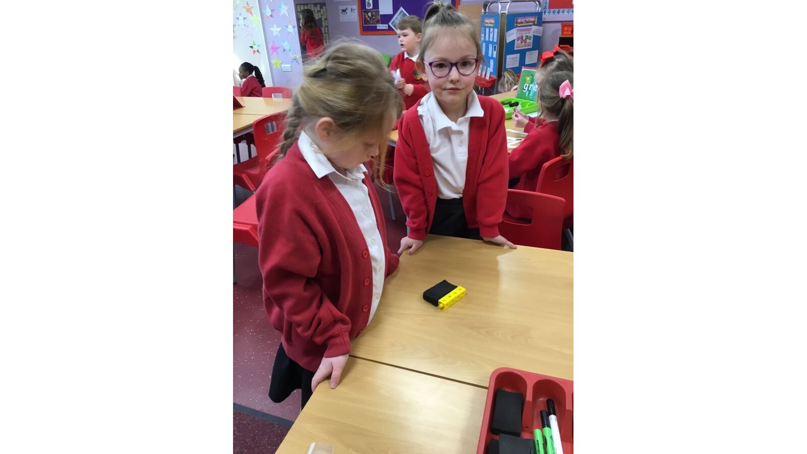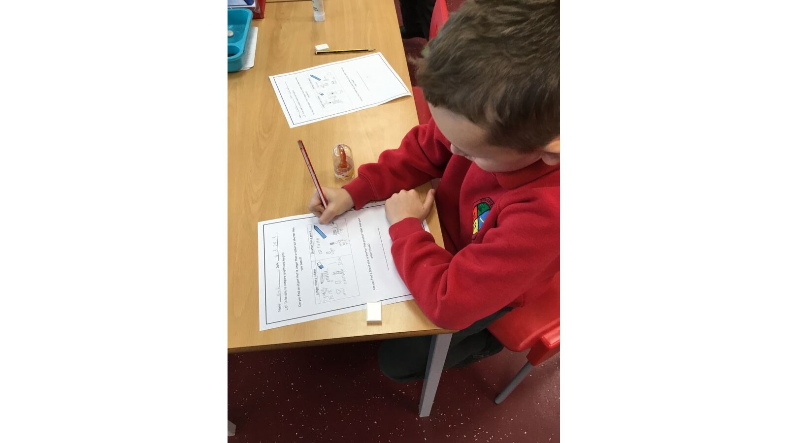 This week we have started our maths unit of measures. We are starting by looking at length. On Monday we found objects that were longer than a rubber and shorter than a pencil. Then we had to find taller and shorter friends in a special challenge!