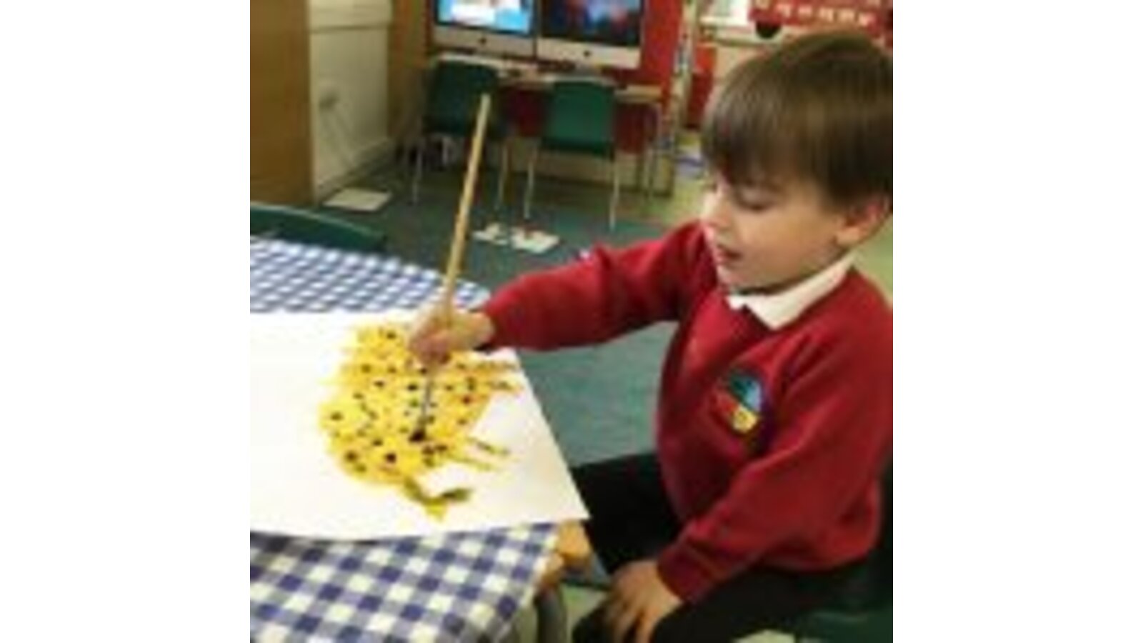 In maths we have been learning about 2D shapes and we made shape pictures using African style prints.