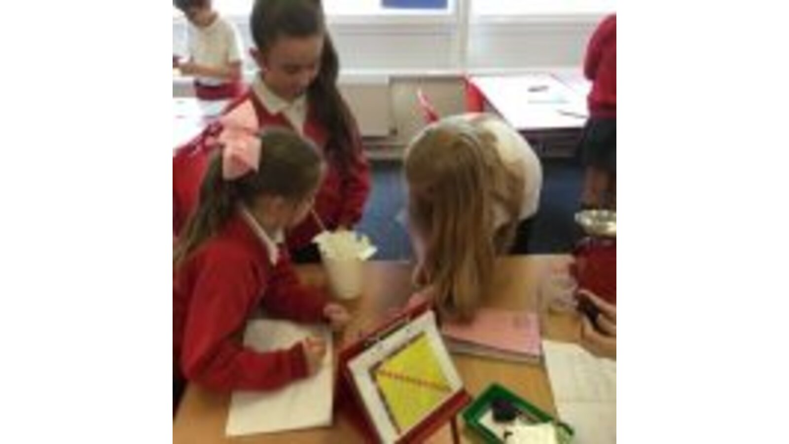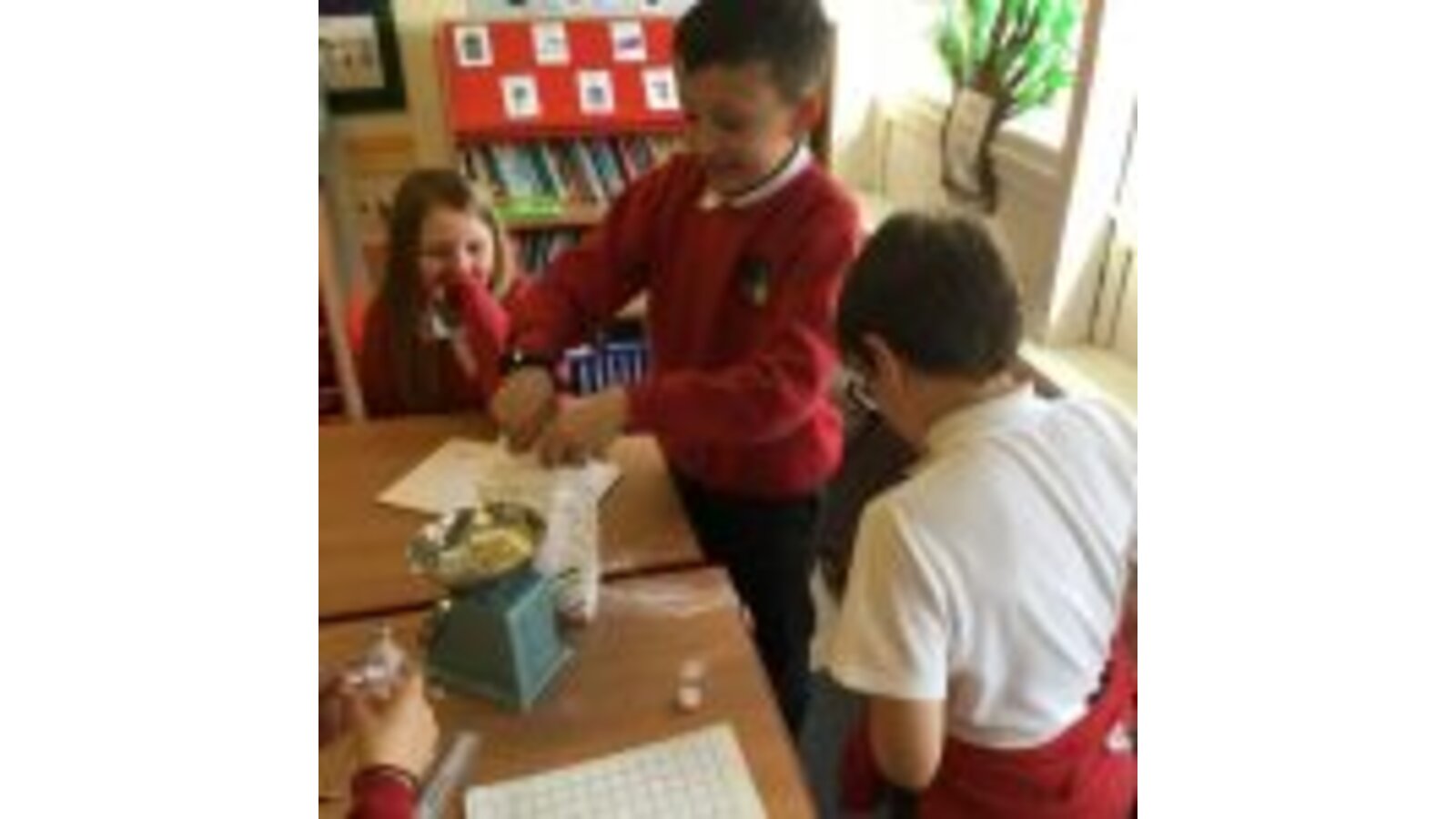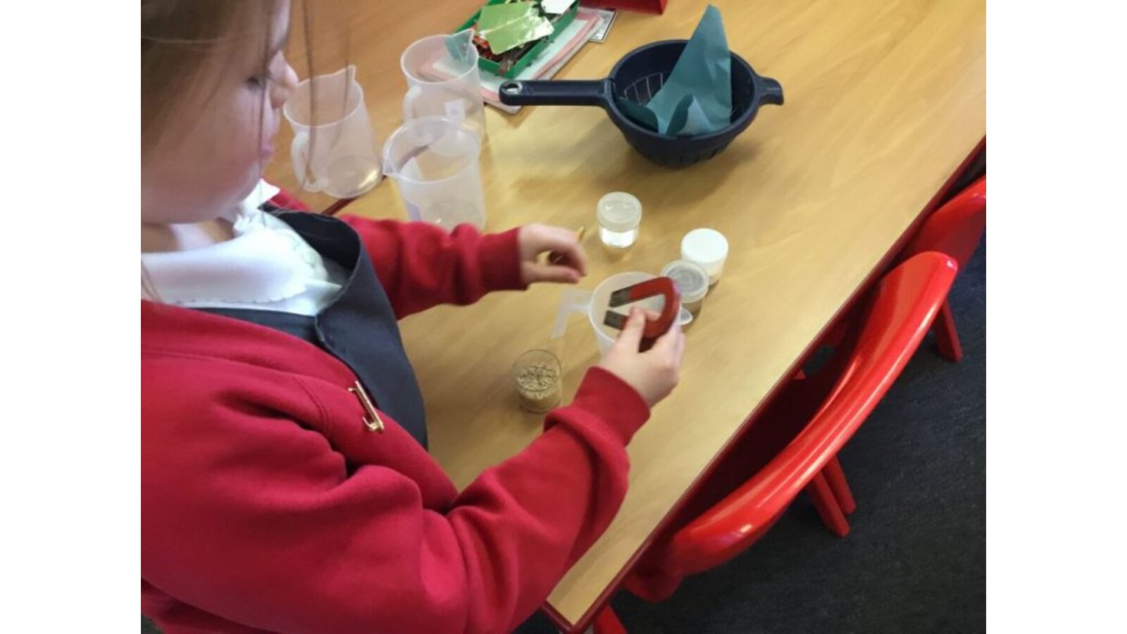 On Wednesday the children learnt about separating mixtures. Here they are separating two solids using a magnet.
